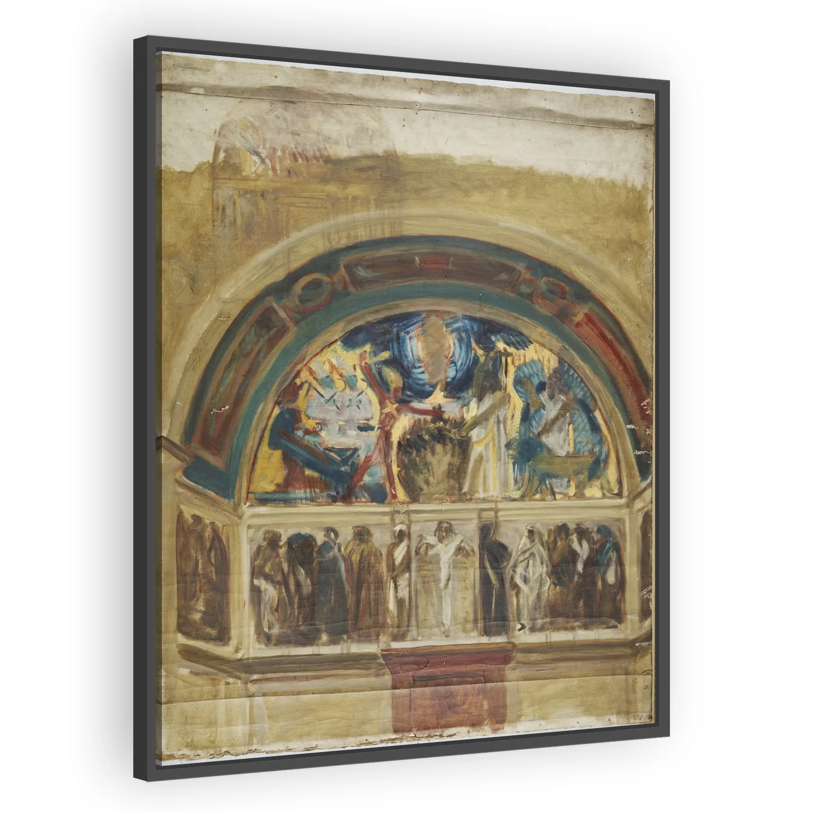 A dynamic preparatory study by John Singer Sargent (1892) for the Boston Public Library’s Special Collection Hall. This work showcases Sargent’s fluid draftsmanship, bold compositional planning, and h...