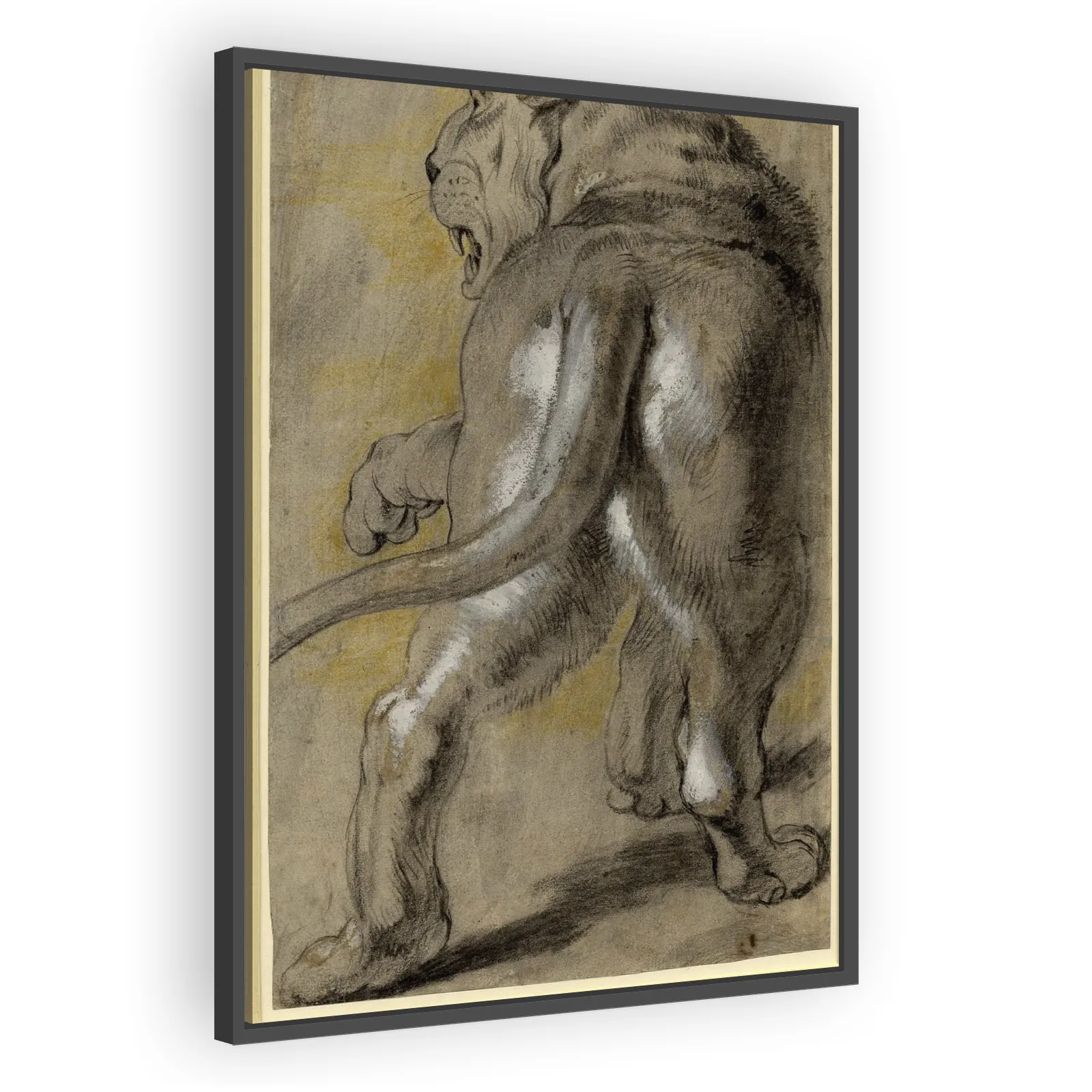 A powerful 1614 study by Peter Paul Rubens, capturing the raw vitality and muscular anatomy of a lion with dynamic brushwork. A striking example of Baroque naturalism and dramatic movement, prized by...