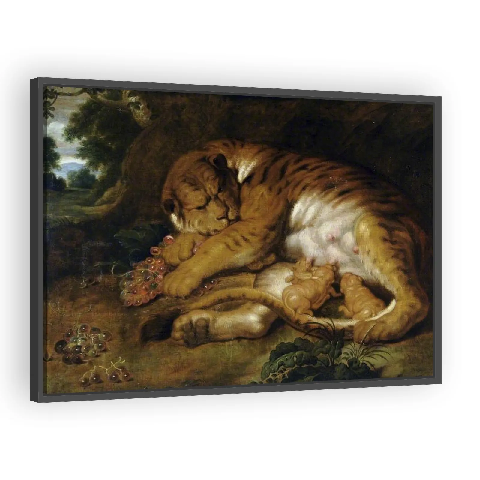 A powerful Baroque depiction by Peter Paul Rubens, 'Tigress with Her Cubs' showcases dynamic movement, dramatic lighting, and Rubens’ mastery of animal anatomy. This striking work balances tenderness...
