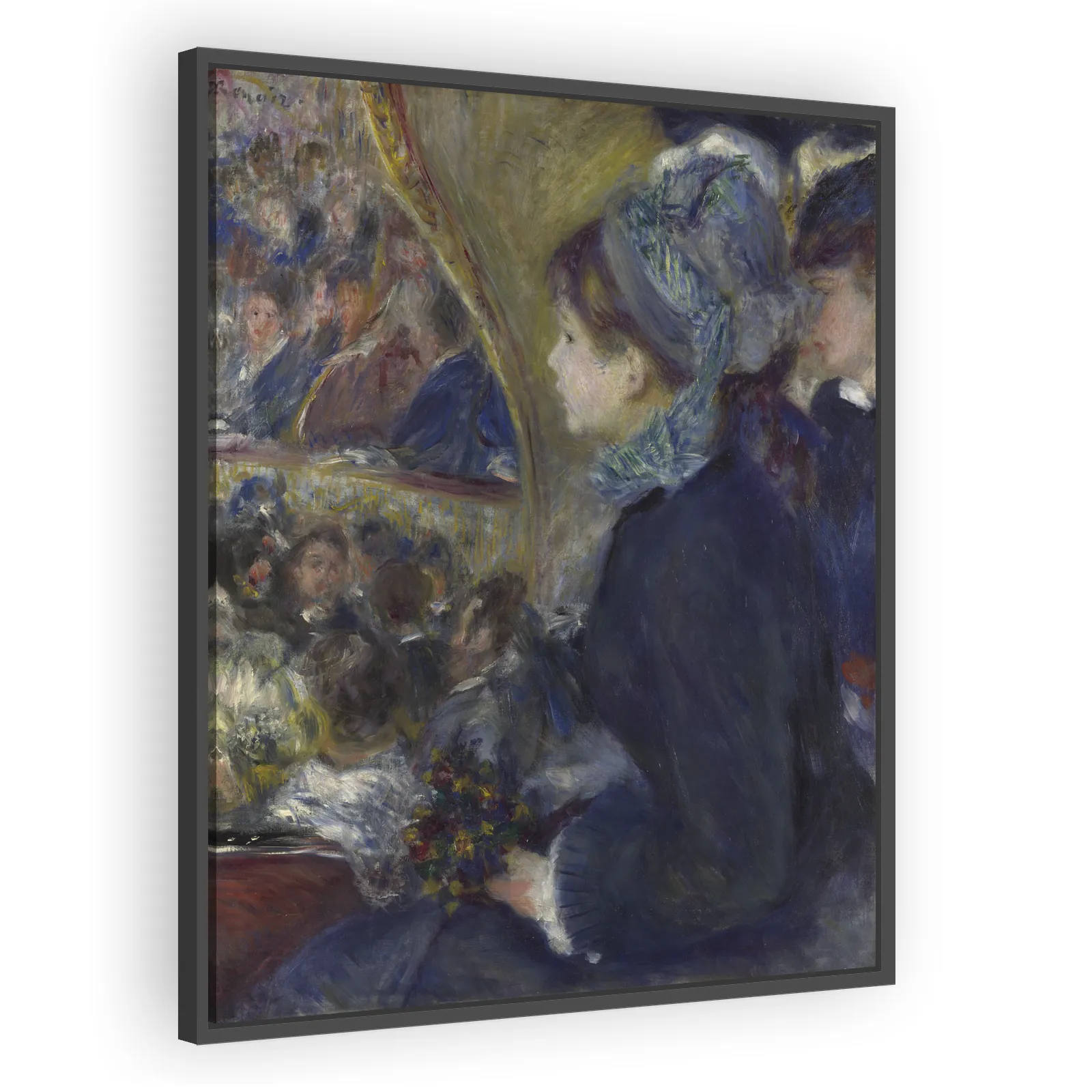Pierre-Auguste Renoir's At the Theatre (La Première Sortie), 1876, captures Parisian nightlife with luminous color and fluid brushwork. An Impressionist celebration of modern leisure, it appeals to co...