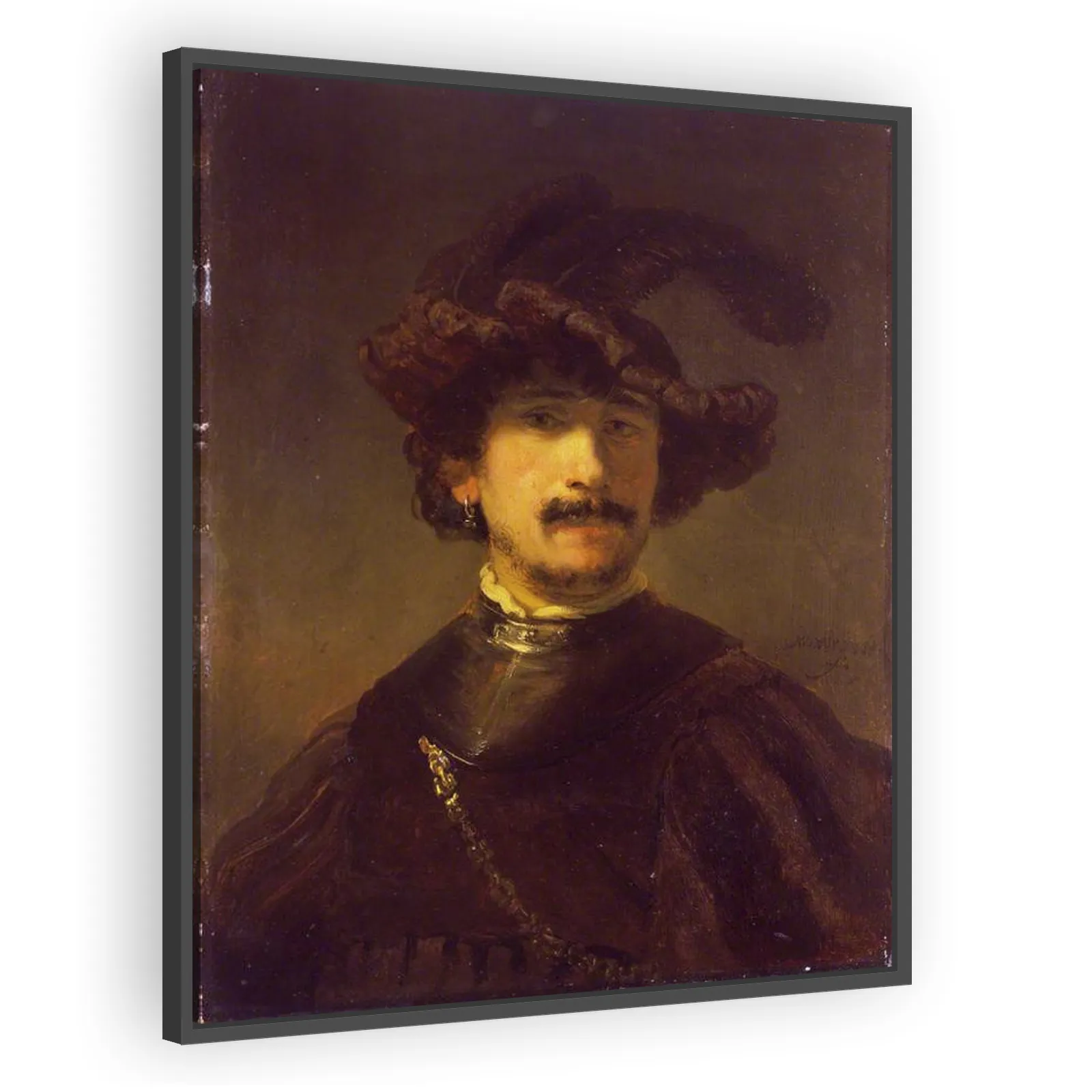 A striking 1634 head-and-shoulders study by Rembrandt, emphasizing expressive brushwork, dramatic lighting, and costume detail—ideal for collectors and admirers of Dutch Golden Age portraiture.