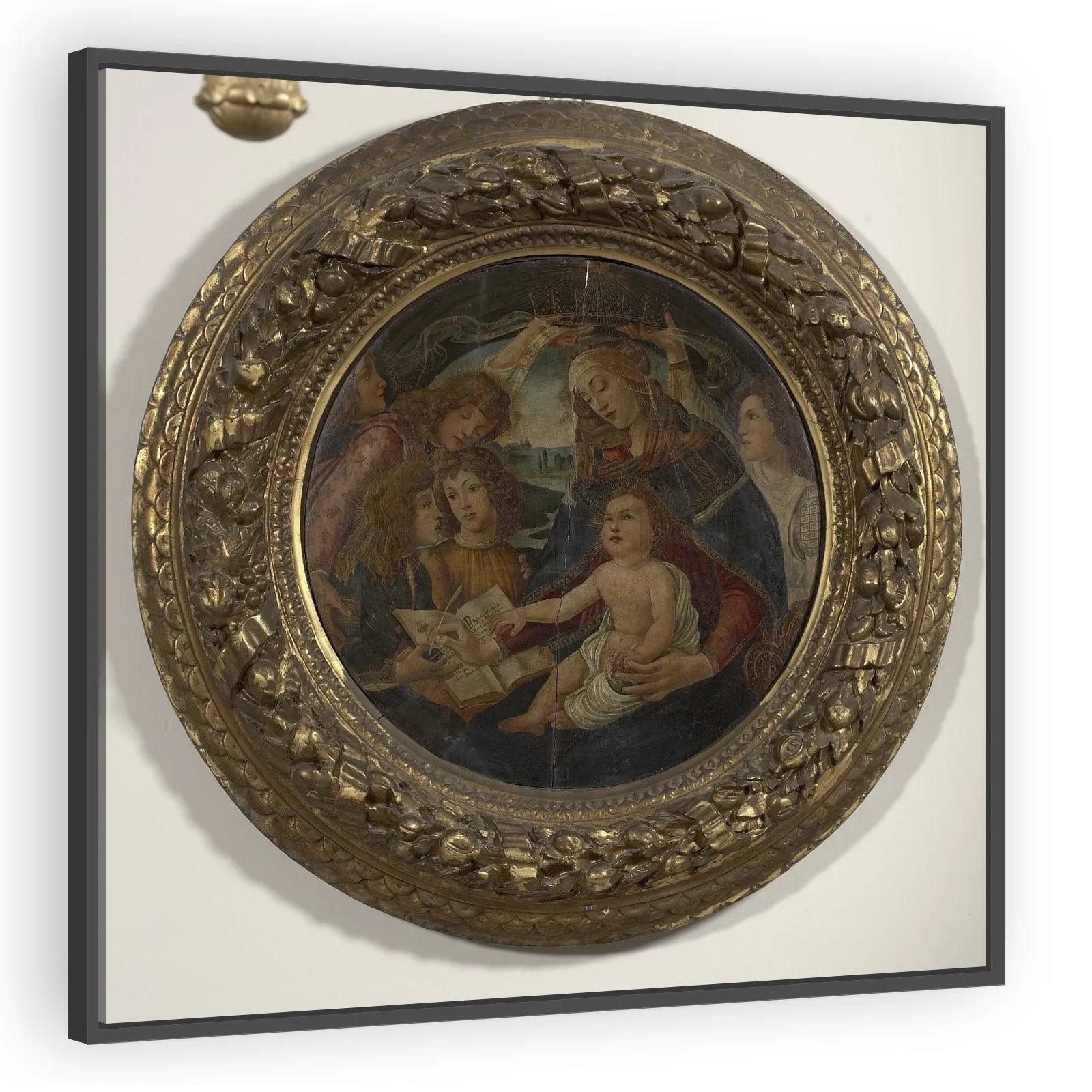 A graceful late-15th-century depiction of the Madonna and Child by Sandro Botticelli (1496). This refined composition exemplifies Botticelli’s lyrical line, devotional intimacy, and elegant figural rh...