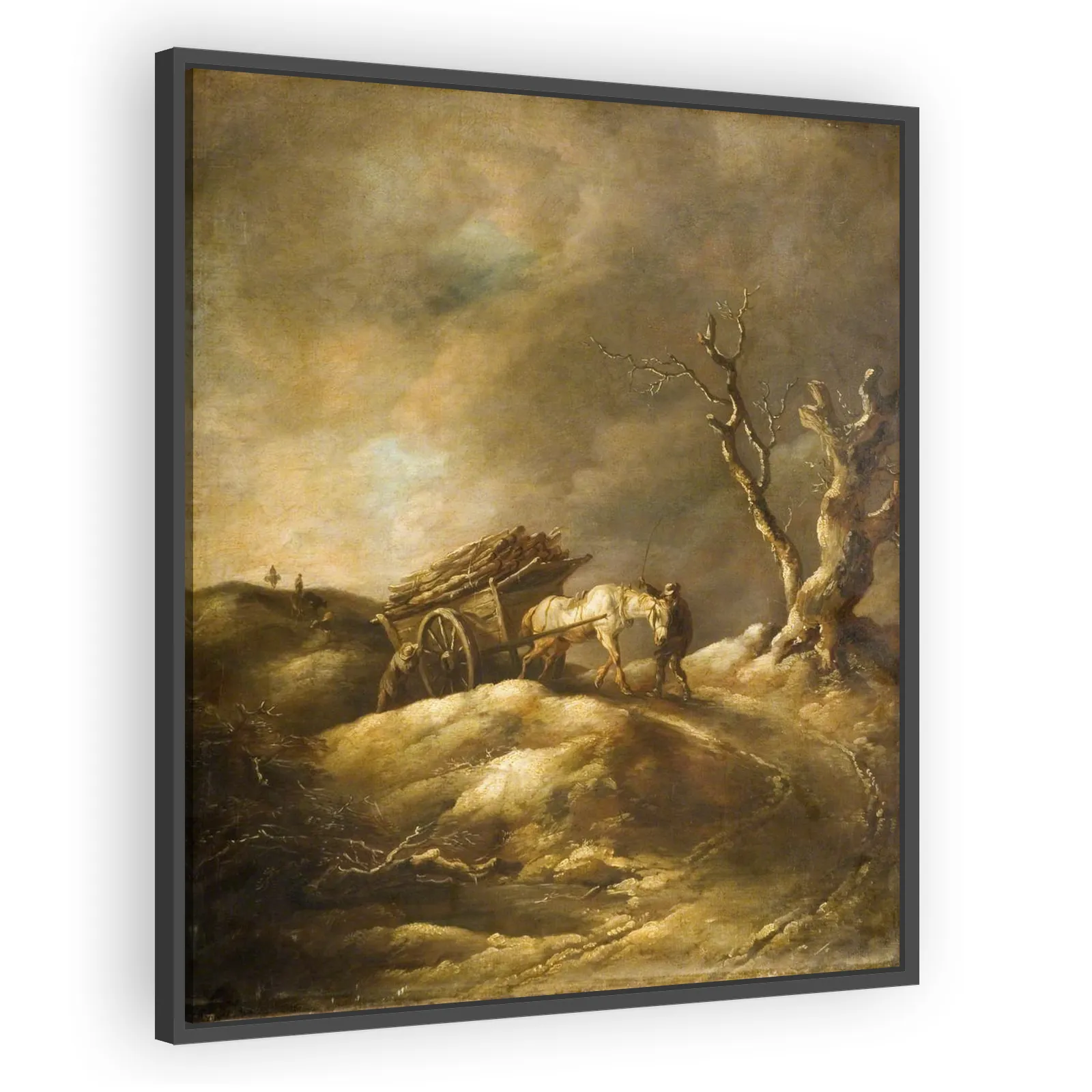 A quietly atmospheric rural view by Thomas Gainsborough capturing a horse and cart crossing a winter landscape. The work showcases Gainsborough’s expressive brushwork, tonal subtlety and empathy for e...
