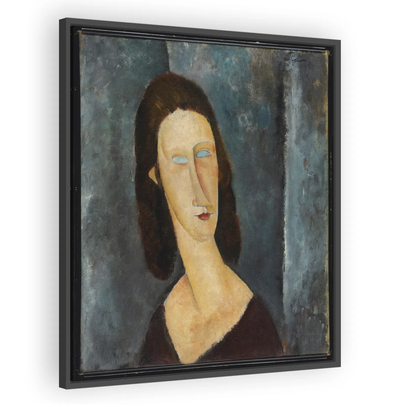 Amedeo Modigliani’s 1917 portrait of Jeanne Hébuterne features his signature elongated forms and serene, almond-shaped eyes. The intimate, modernist depiction blends classical restraint with expressiv...