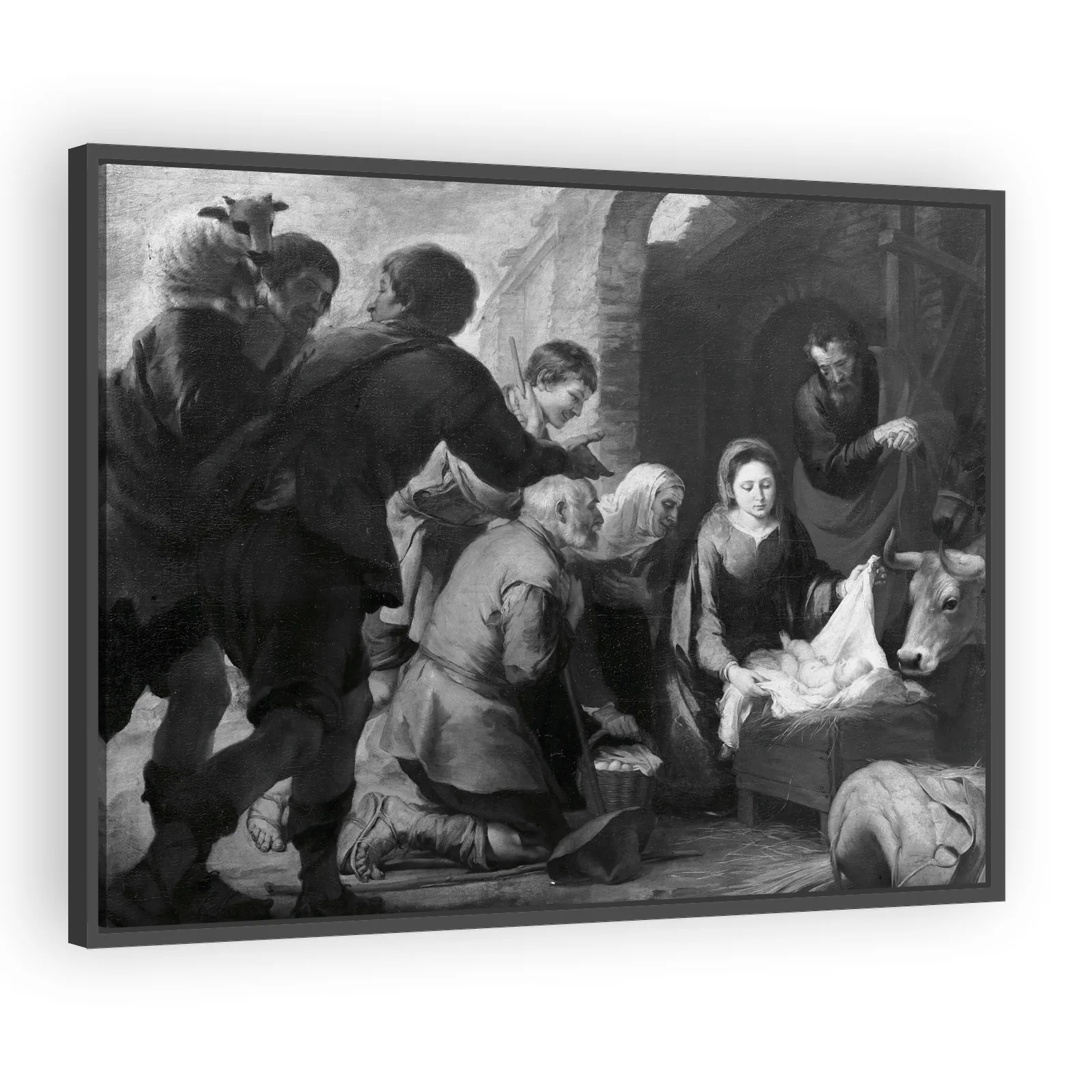 Bartolomé Esteban Murillo’s tender Baroque depiction of the nativity captures warm light, intimate emotion, and soft realism—an evocative, devotional scene prized for its luminous color and human warm...