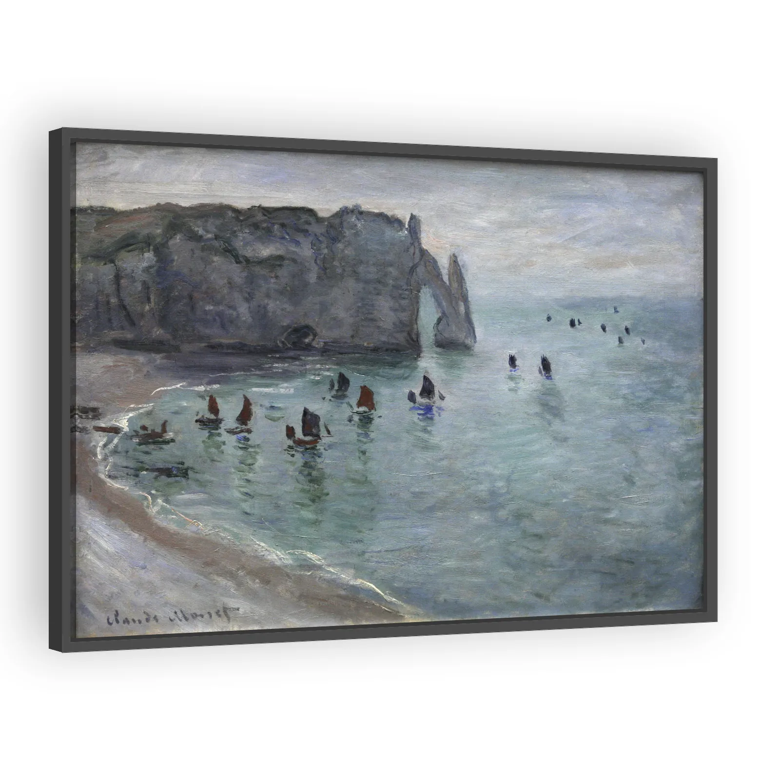 A luminous Impressionist view by Claude Monet from 1885, capturing the dramatic cliffs of Étretat and the fleeting effects of light on sea and sky. An evocative coastal scene prized for its vibrant br...