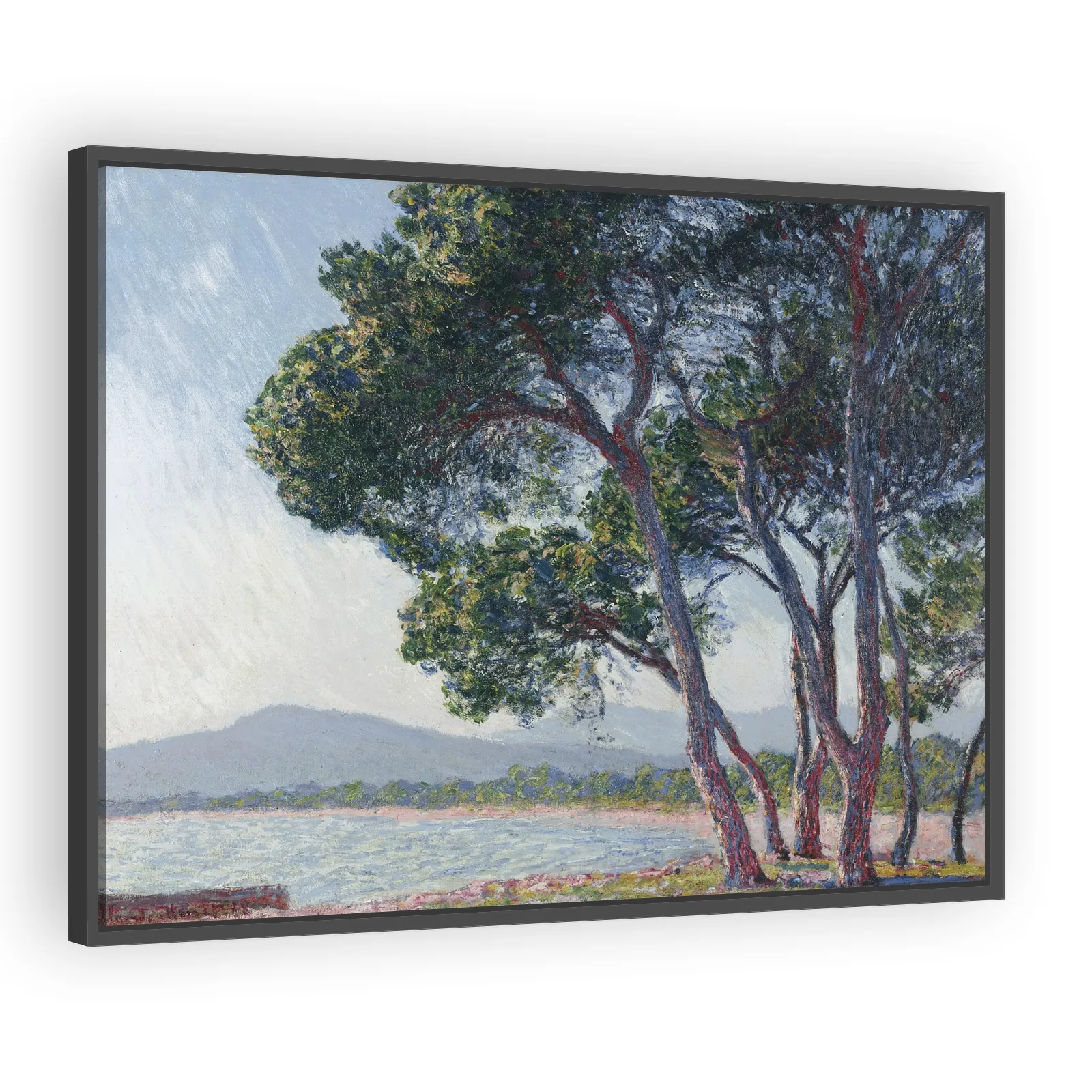 Claude Monet’s Plage de Juan-les-Pins (1888) captures the Mediterranean’s luminous light and leisurely coastal life with fluid brushwork and vibrant color—an evocative Impressionist seaside scene idea...