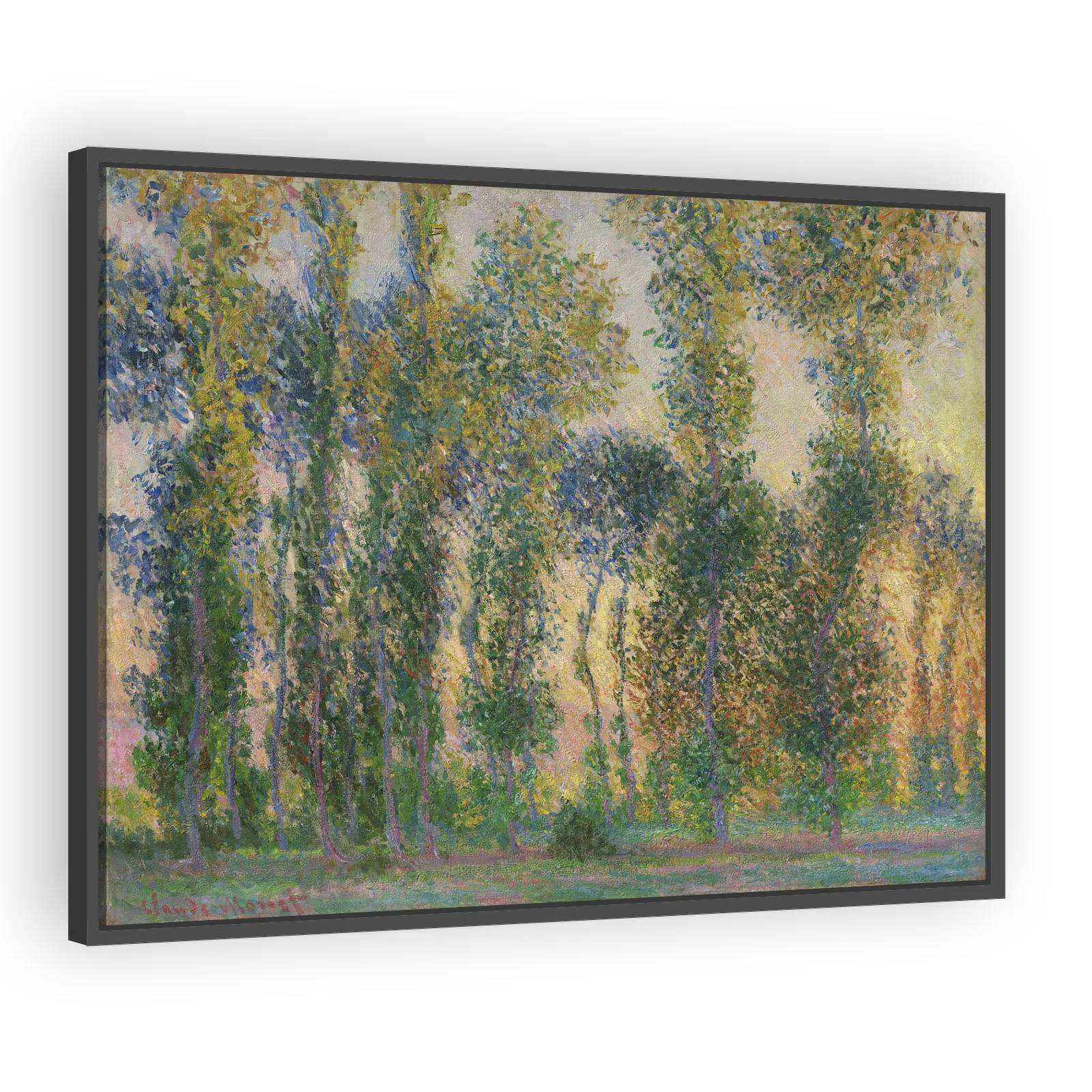 A luminous Impressionist view by Claude Monet (1887), Poplars at Giverny captures shimmering light, atmospheric color, and the artist’s intimate relationship with nature—an evocative, collectible exam...