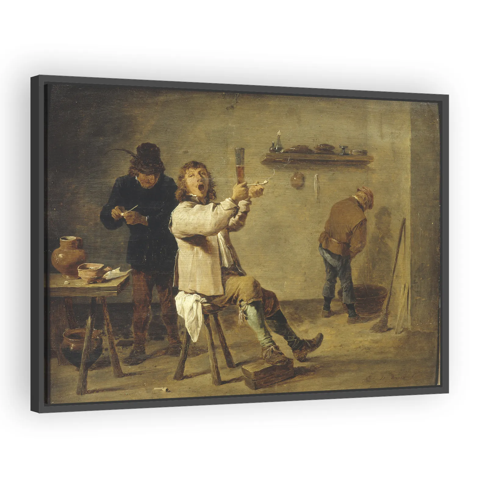 David Teniers the Younger (1610–1690) was a leading Flemish Baroque painter known for lively genre scenes, tavern and village subjects, and refined gallery pictures that appealed to collectors and courts. His balanced compositions and anecdotal detail made his works popular decorative and collectible pieces in the 17th century.