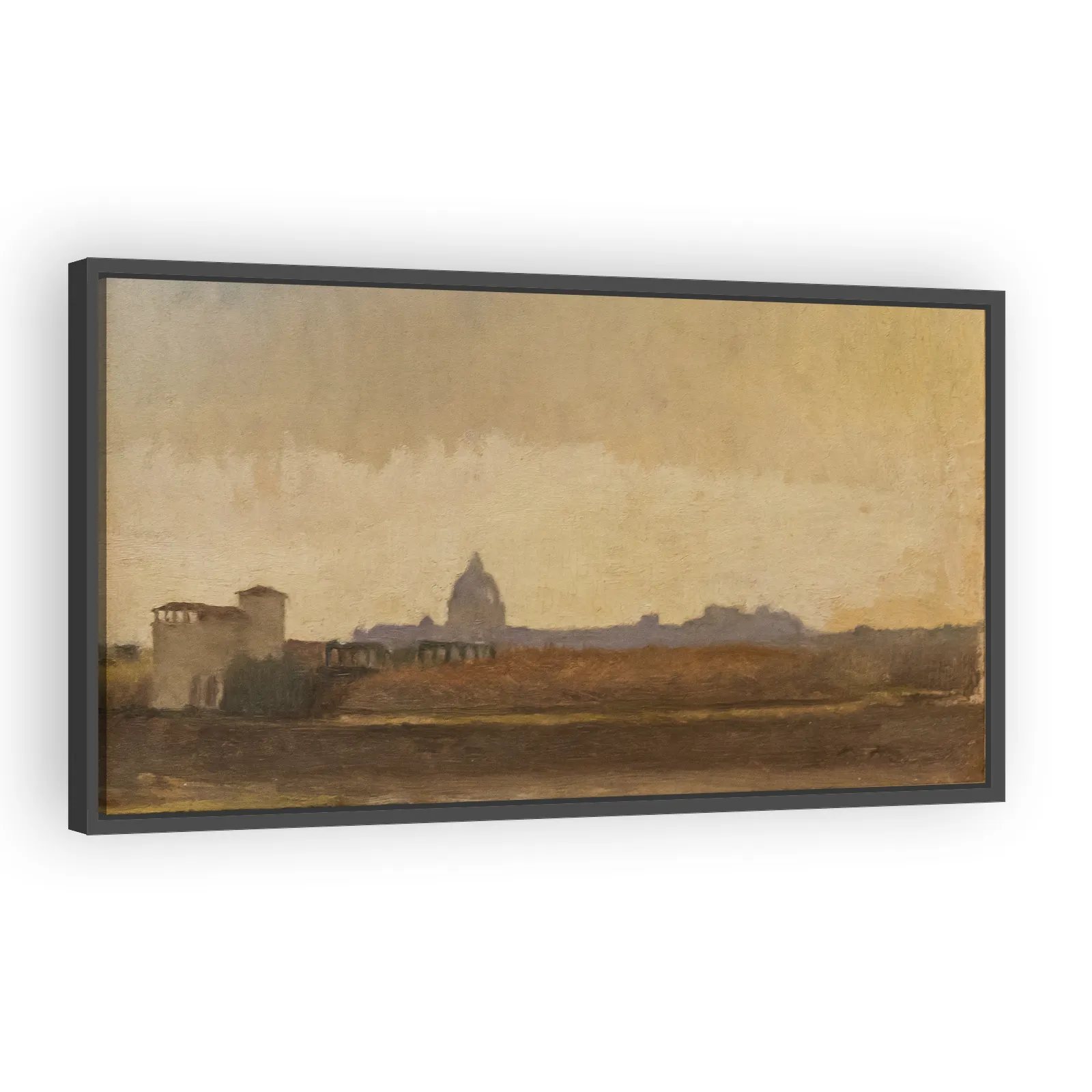 A luminous mid-19th-century view of Rome by Edgar Degas, capturing atmospheric light and classical topography from the Tiber’s banks. An evocative study in perspective and tone valued by collectors an...