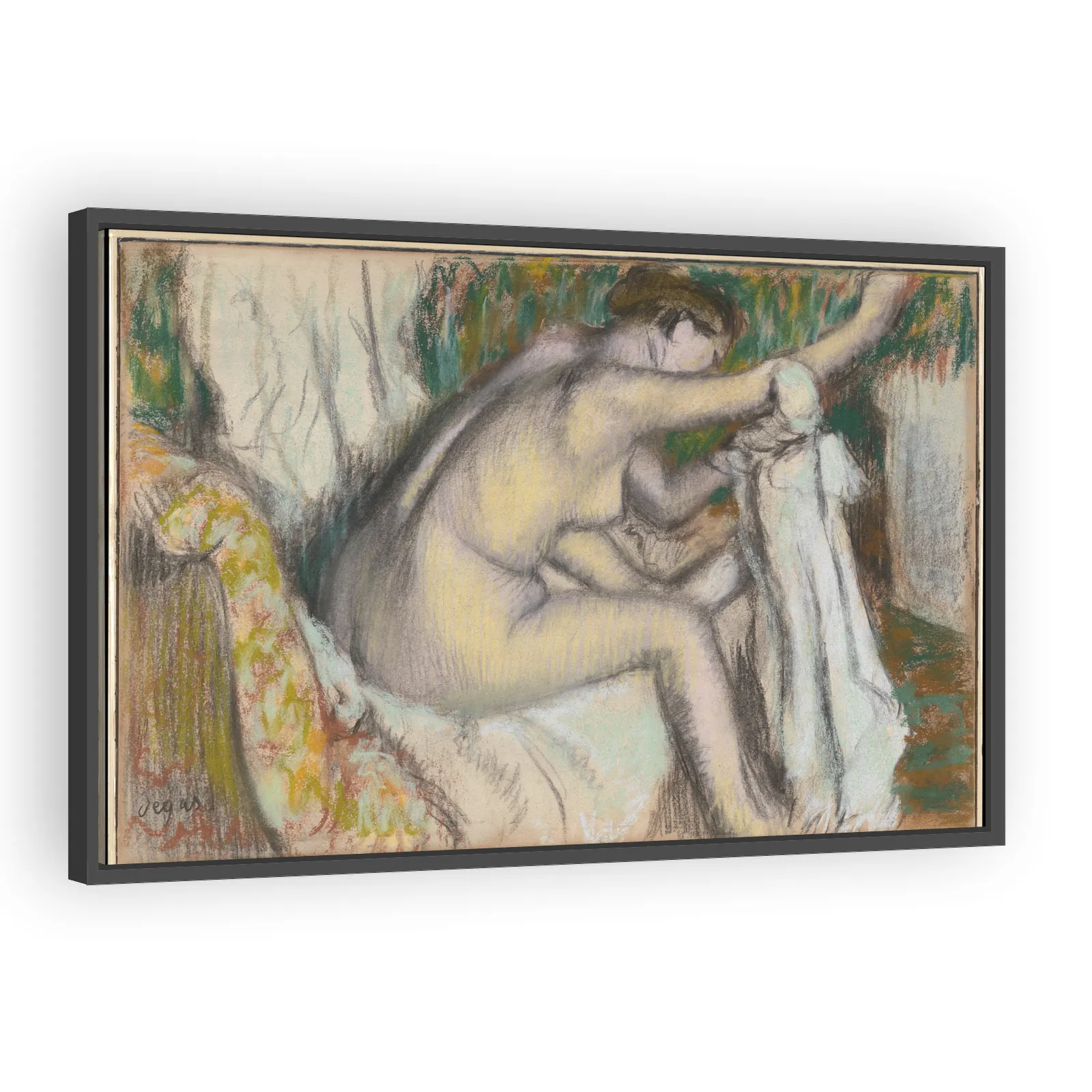 A quietly intimate 1890 drawing by Edgar Degas, capturing a solitary moment of daily life with economy of line and sensitive observation. This study reflects Degas’s enduring interest in the human fig...