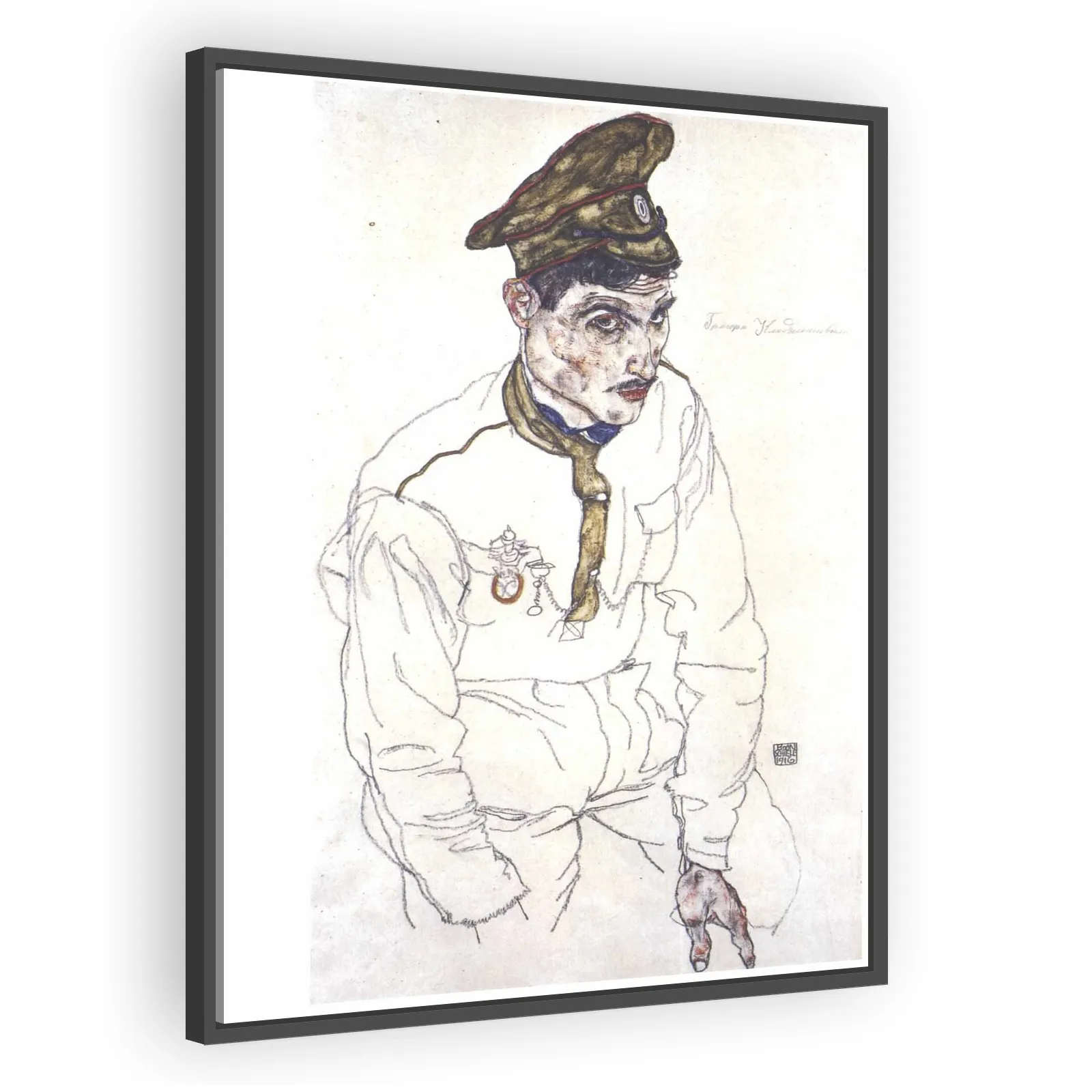 Egon Schiele’s poignant 1916 portrait of Grigori Kladjischuili captures the raw vulnerability of a World War I prisoner. The work’s expressive line and restrained palette convey psychological intensit...