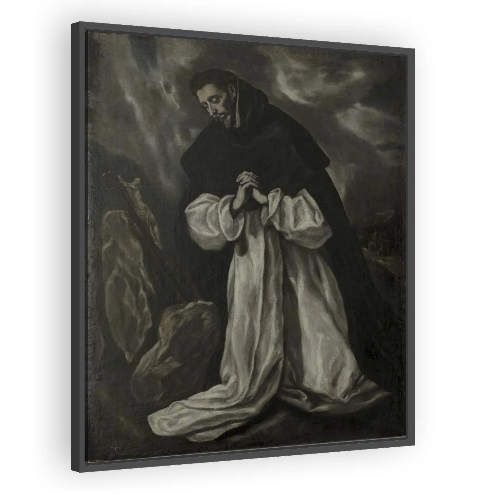 El Greco’s Saint Dominic (1595) presents the Dominican founder in a transcendent, elongated form characteristic of the artist’s mature style—expressive color, spiritual intensity, and dramatic light t...