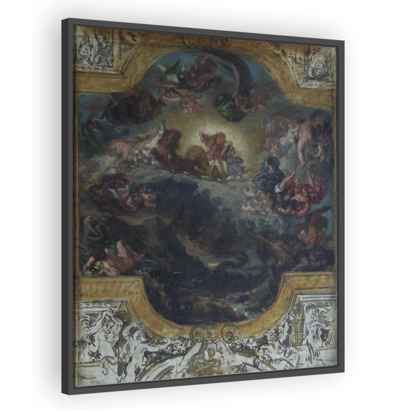 Eugène Delacroix’s dramatic depiction of Apollo defeating the serpent Python embodies Romantic energy, vivid color, and classical myth. A dynamic, emotionally charged composition that appeals to colle...