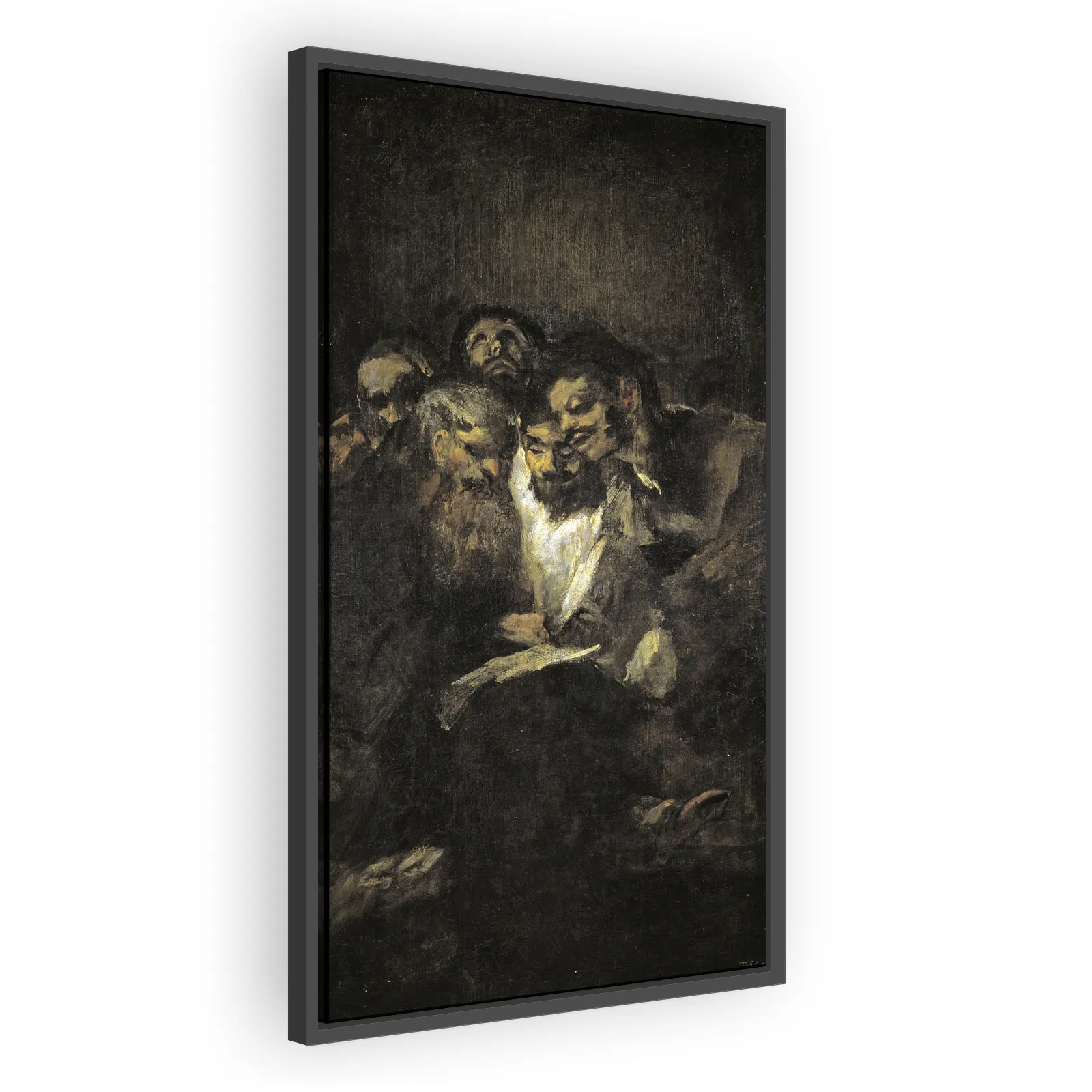 A powerful example of Francisco Goya’s late style, Men Reading (1820) is an evocative oil on wall transferred to canvas. Its stark figures and ambiguous narrative reflect Goya’s penetrating social vis...