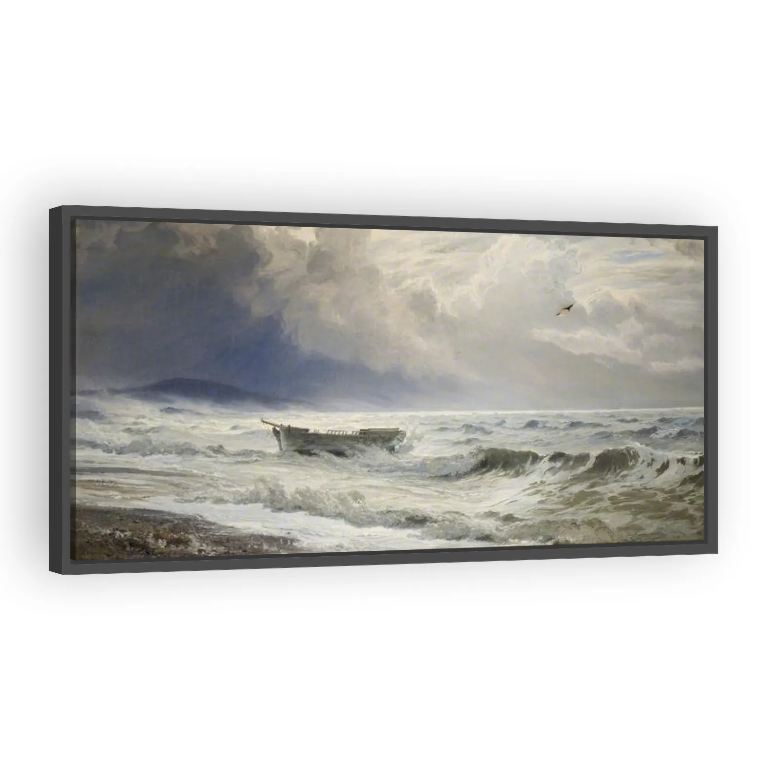 A dramatic 1874 coastal scene by Henry Moore, capturing the raw energy of storm-swept seas and sky. This evocative landscape combines 19th-century atmospheric drama with restrained composition — ideal...
