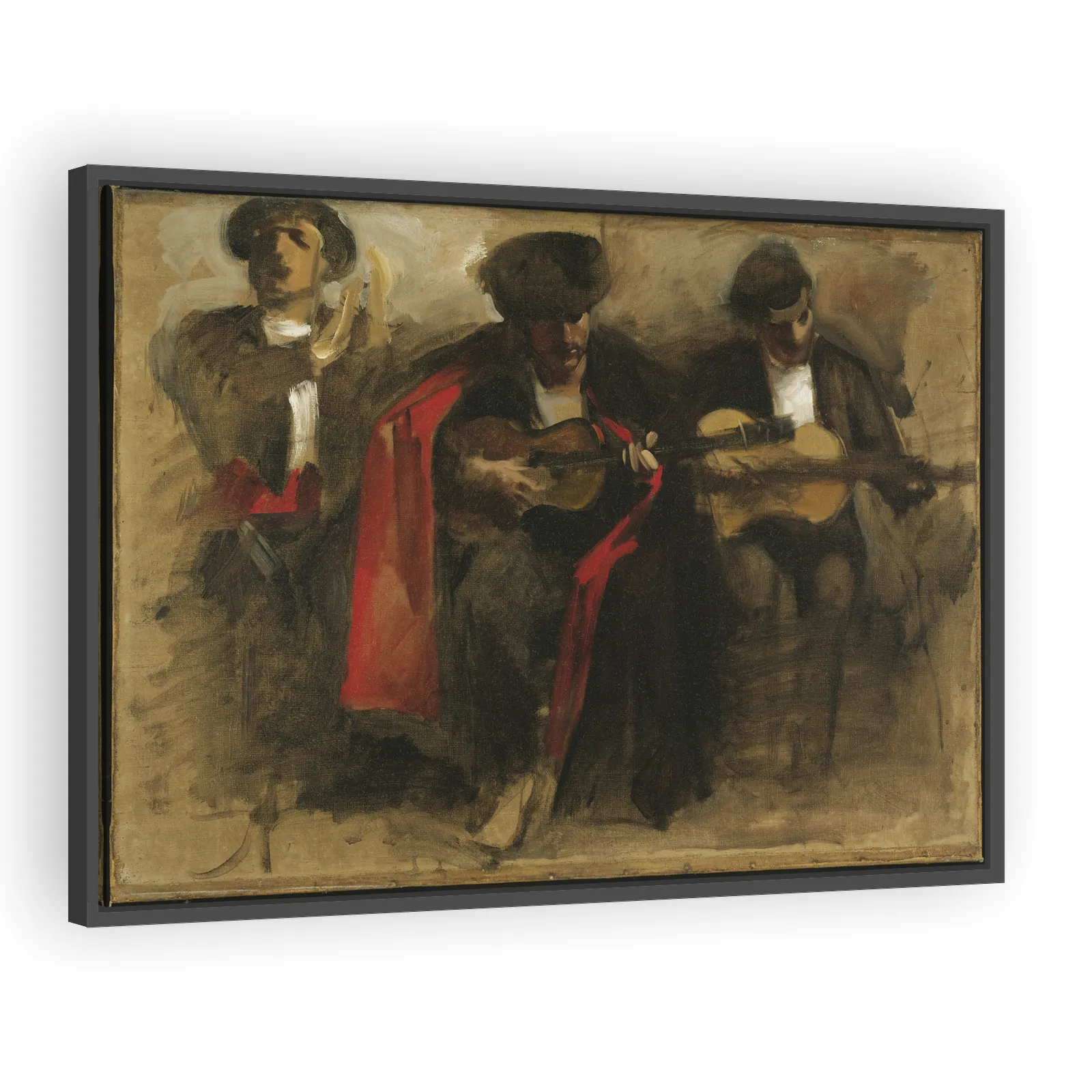 A dynamic preparatory study by John Singer Sargent for his celebrated El Jaleo, capturing expressive gestures, rapid brushwork, and the theatrical energy of Andalusian music — an evocative work prized...