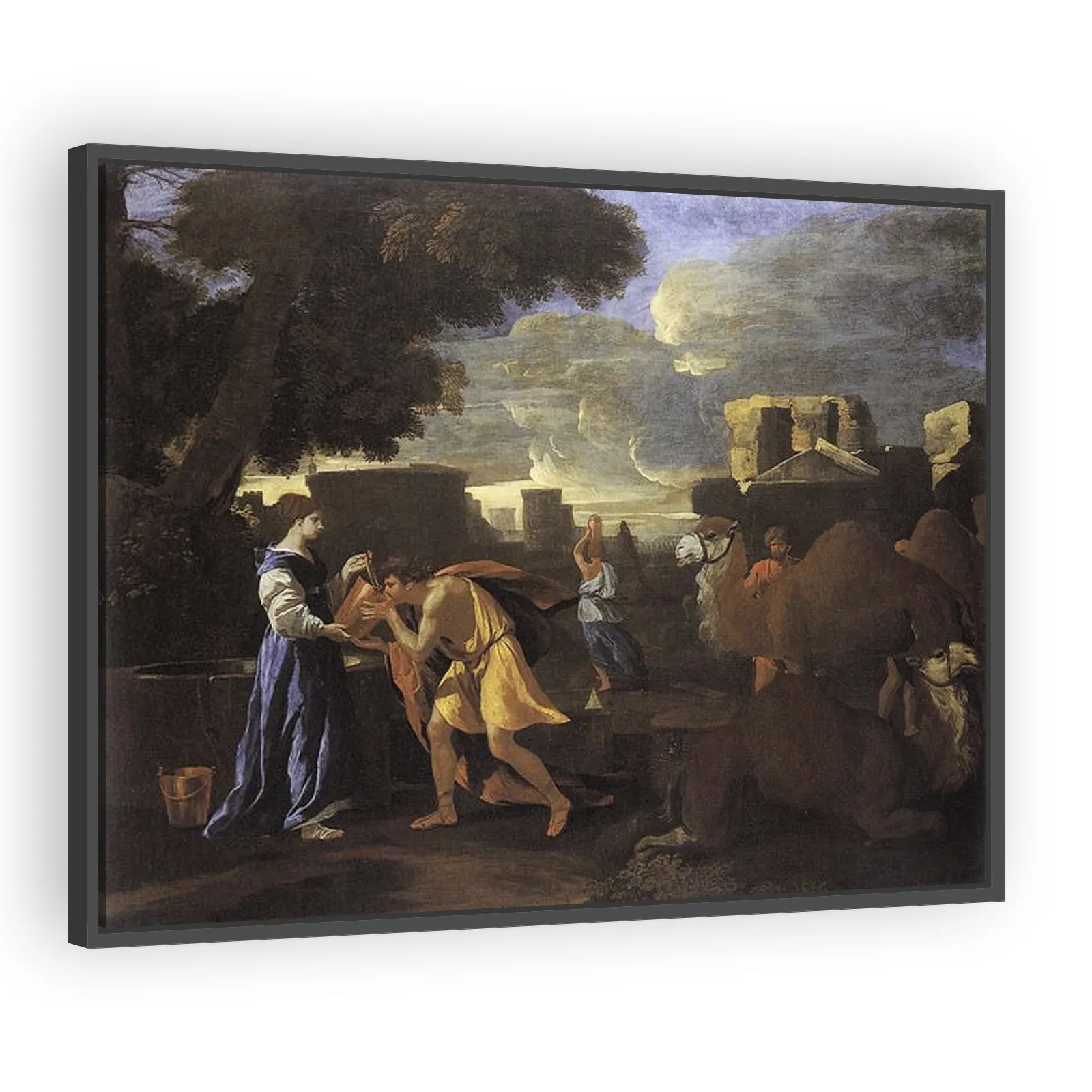 A vivid 1626 depiction of the biblical encounter at the well. Rich in Baroque-era drama and naturalistic detail, this work captures compassion and hospitality—an evocative choice for collectors of rel...