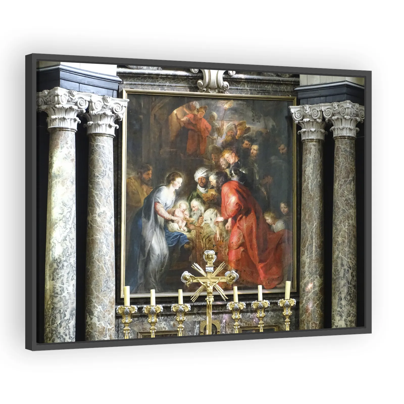 A 1617 Baroque masterwork by Peter Paul Rubens in Saint John's Church, Mechelen — a dramatic, color-rich depiction of the Epiphany that showcases Rubens' dynamic composition and theatrical use of ligh...
