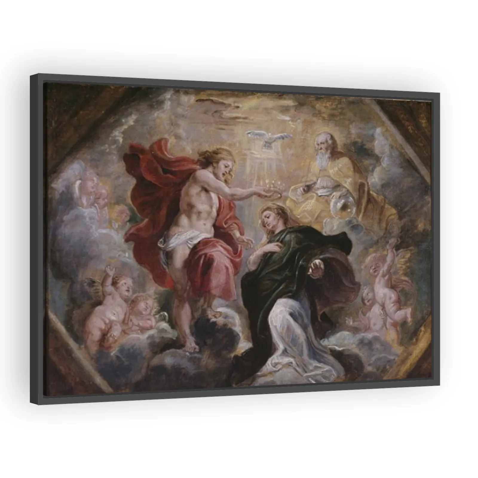 A dynamic Baroque vision by Peter Paul Rubens (1620), Coronation of the Virgin captures the triumphant moment of Mary’s crowning with dramatic movement, luminous color, and devotional intensity—an ico...