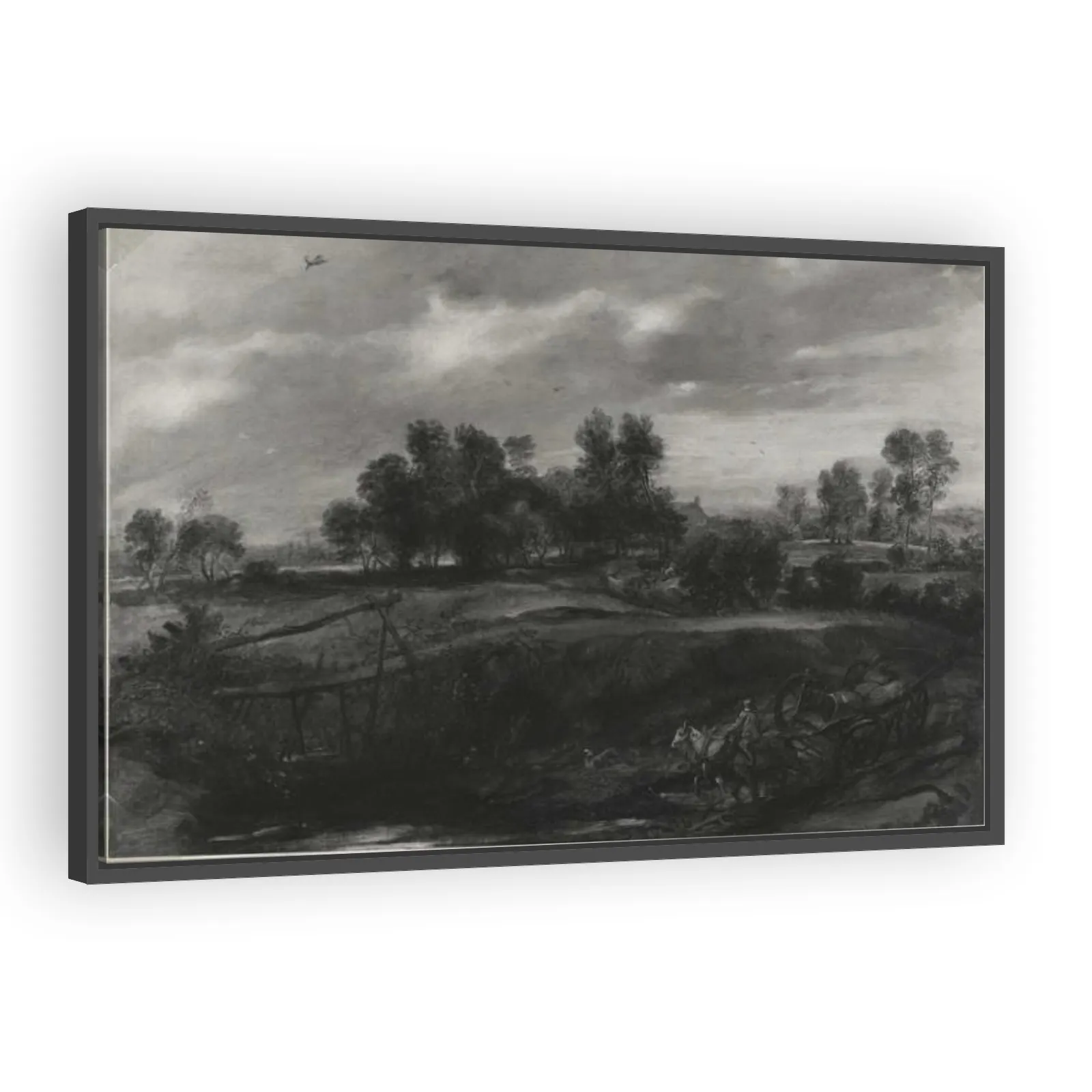 A dynamic 1630 landscape by Peter Paul Rubens that combines sweeping Baroque drama with naturalistic detail. This scene of travelers and a horse-drawn carriage showcases Rubens’s robust brushwork, atm...