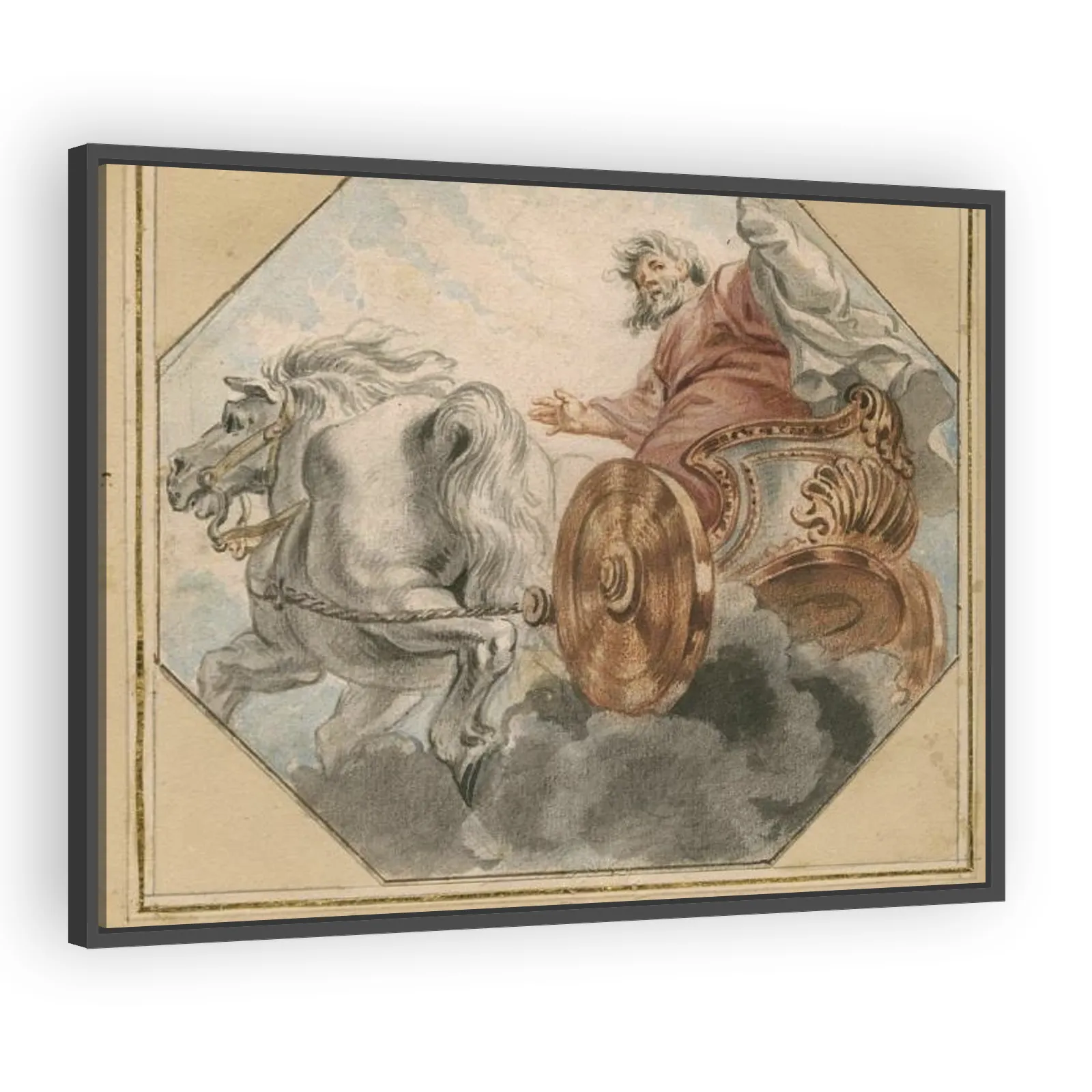 A dramatic Baroque depiction by Peter Paul Rubens, portraying Elijah's fiery ascension and Elisha's succession. Rich in movement, color, and theological symbolism, the work exemplifies theatrical comp...