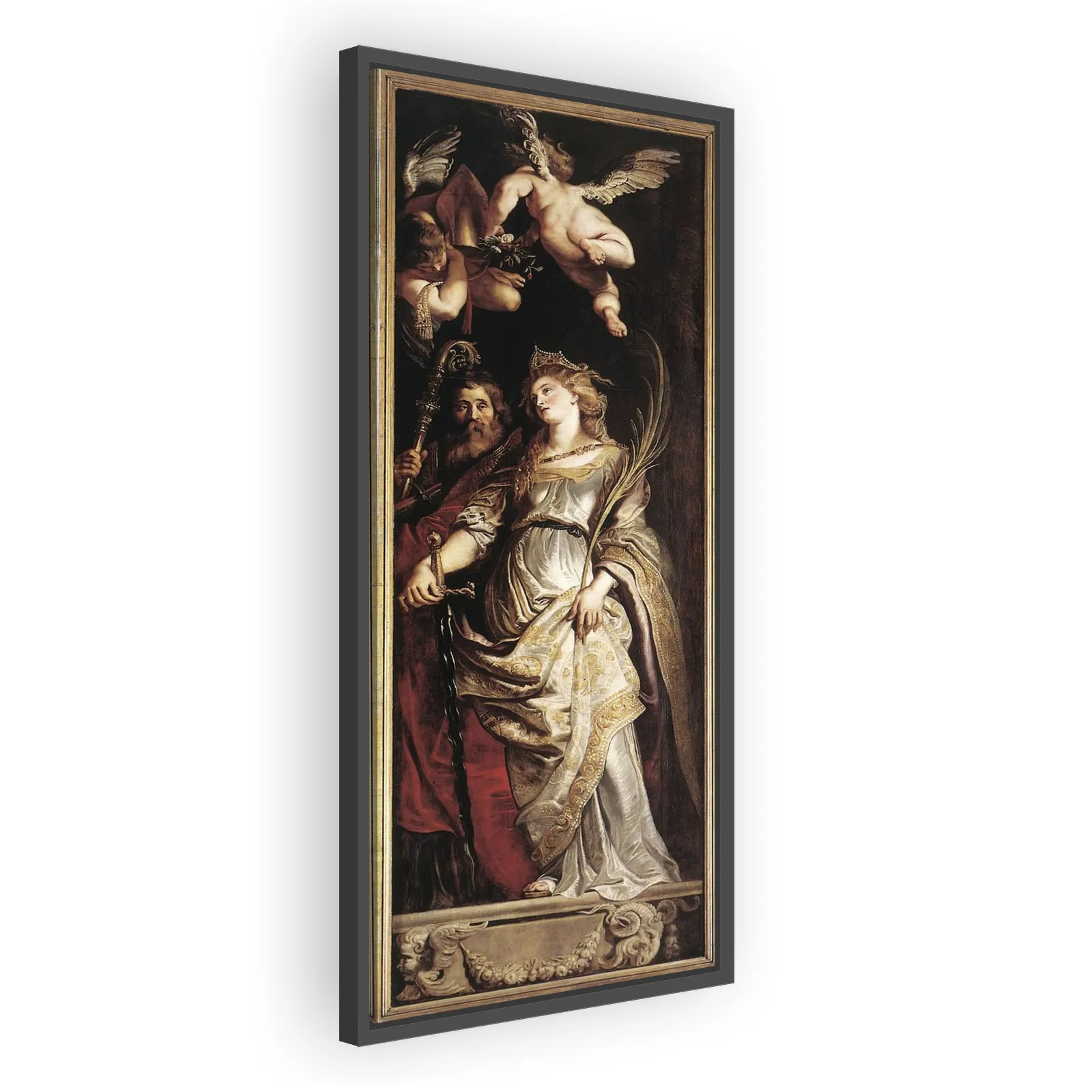 A dynamic 1610 composition by Peter Paul Rubens in Onze-Lieve-Vrouwekathedraal. Combining Baroque drama, rich color, and devotional subject matter, this work captures two important saints with theatri...