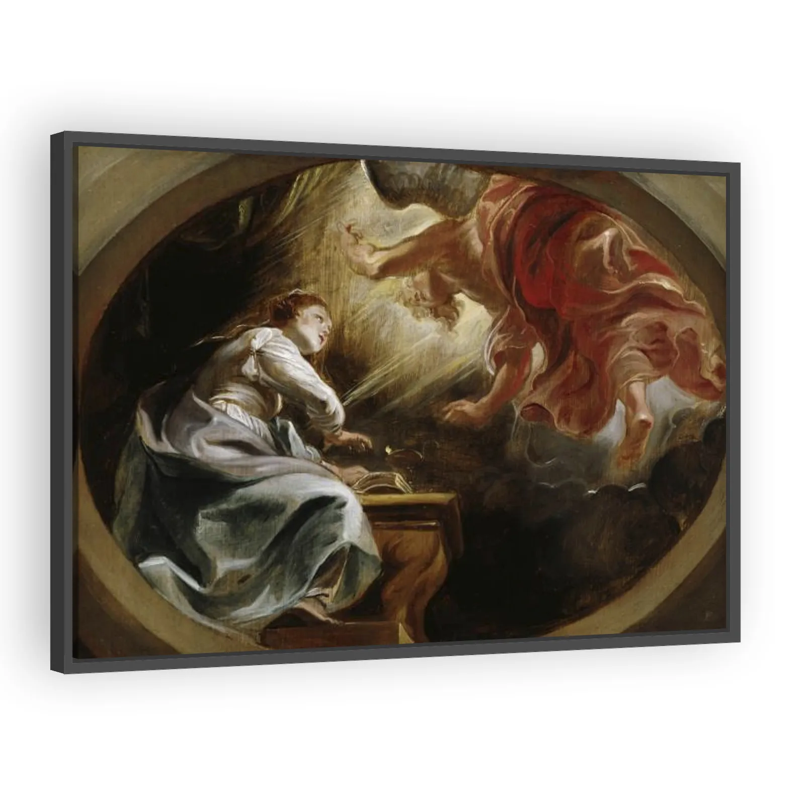 Peter Paul Rubens’ The Annunciation (1620) captures the biblical moment of the angel’s revelation to Mary with dramatic Baroque movement, luminous contrasts, and theatrical composition—an evocative wo...