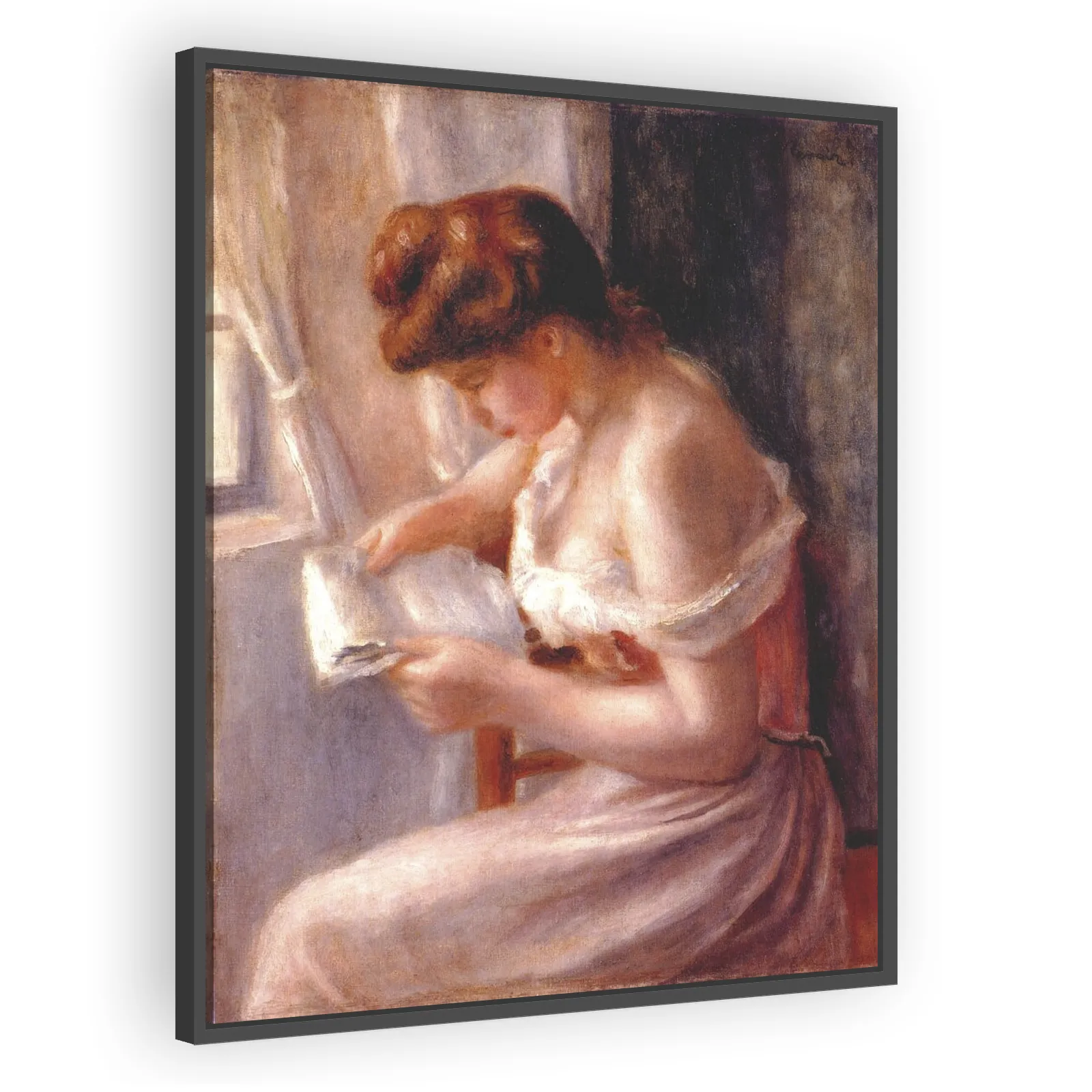 A luminous late work by Pierre-Auguste Renoir, 'A Girl Reading' captures intimate domestic tranquility through warm color, soft brushwork, and a tender focus on everyday beauty—an appealing addition f...