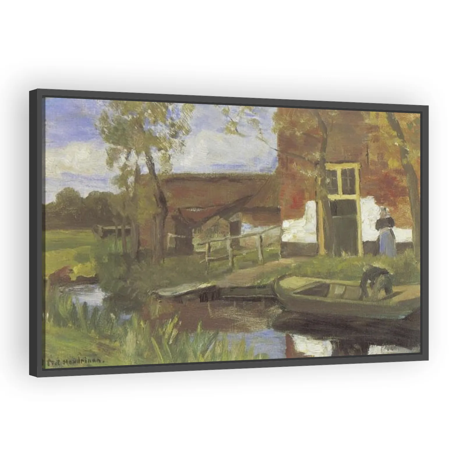 An evocative early work by Piet Mondrian (1900) that captures rural Dutch life with sensitive handling of light, structure, and atmosphere—appealing to collectors of early modern landscape painting.