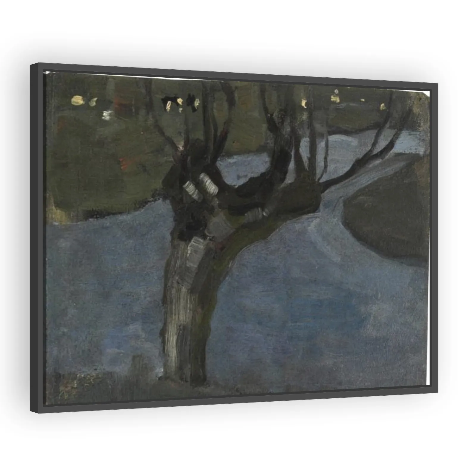 A lyrical early landscape by Piet Mondrian (1900), capturing rural Dutch waterways and a mature willow with sensitive brushwork and a naturalistic palette. An evocative example of Mondrian’s pre-abstr...