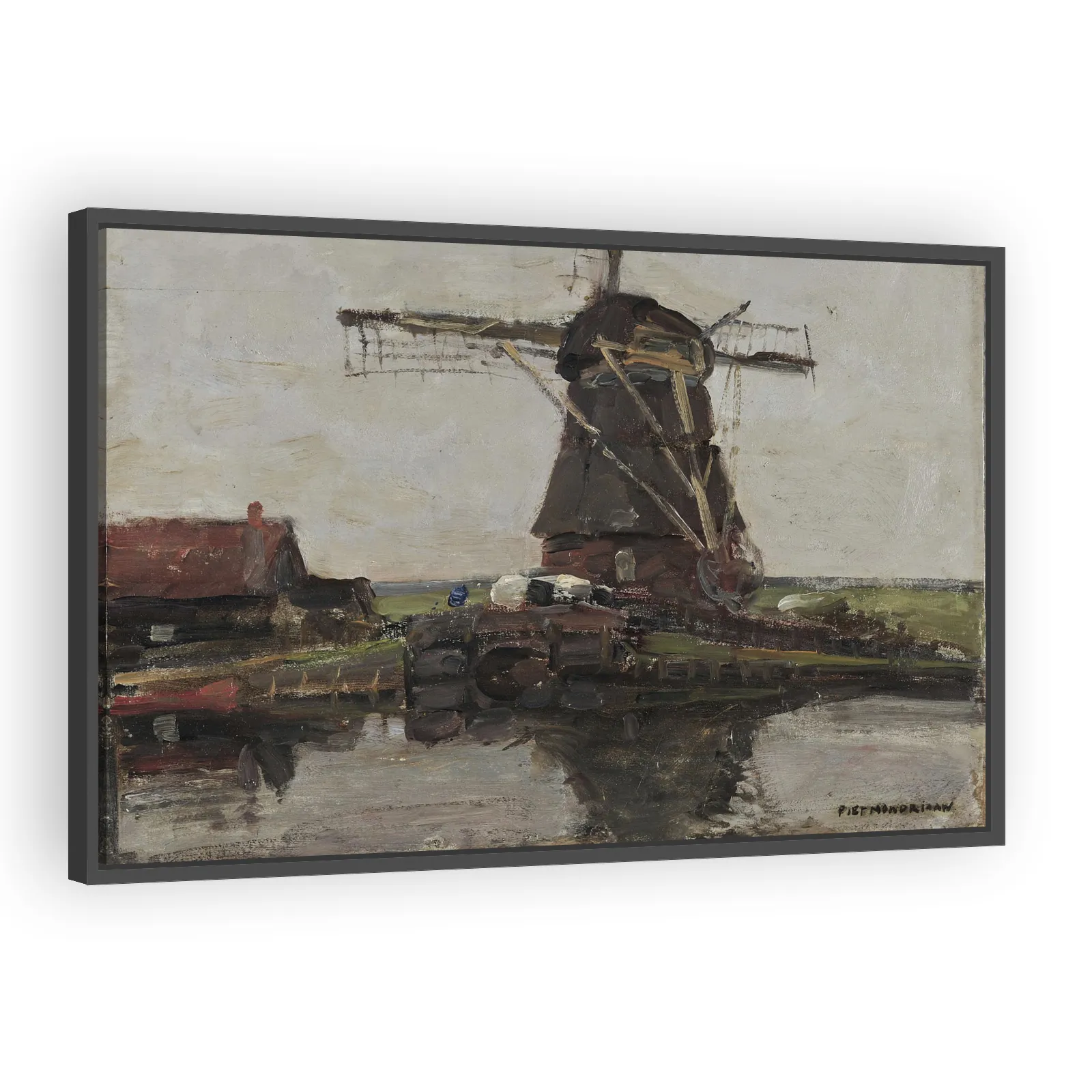 An early Piet Mondrian landscape from 1905, capturing rural Dutch atmosphere with sensitive color and structure. This work bridges Mondrian’s representational beginnings and his later abstraction, off...