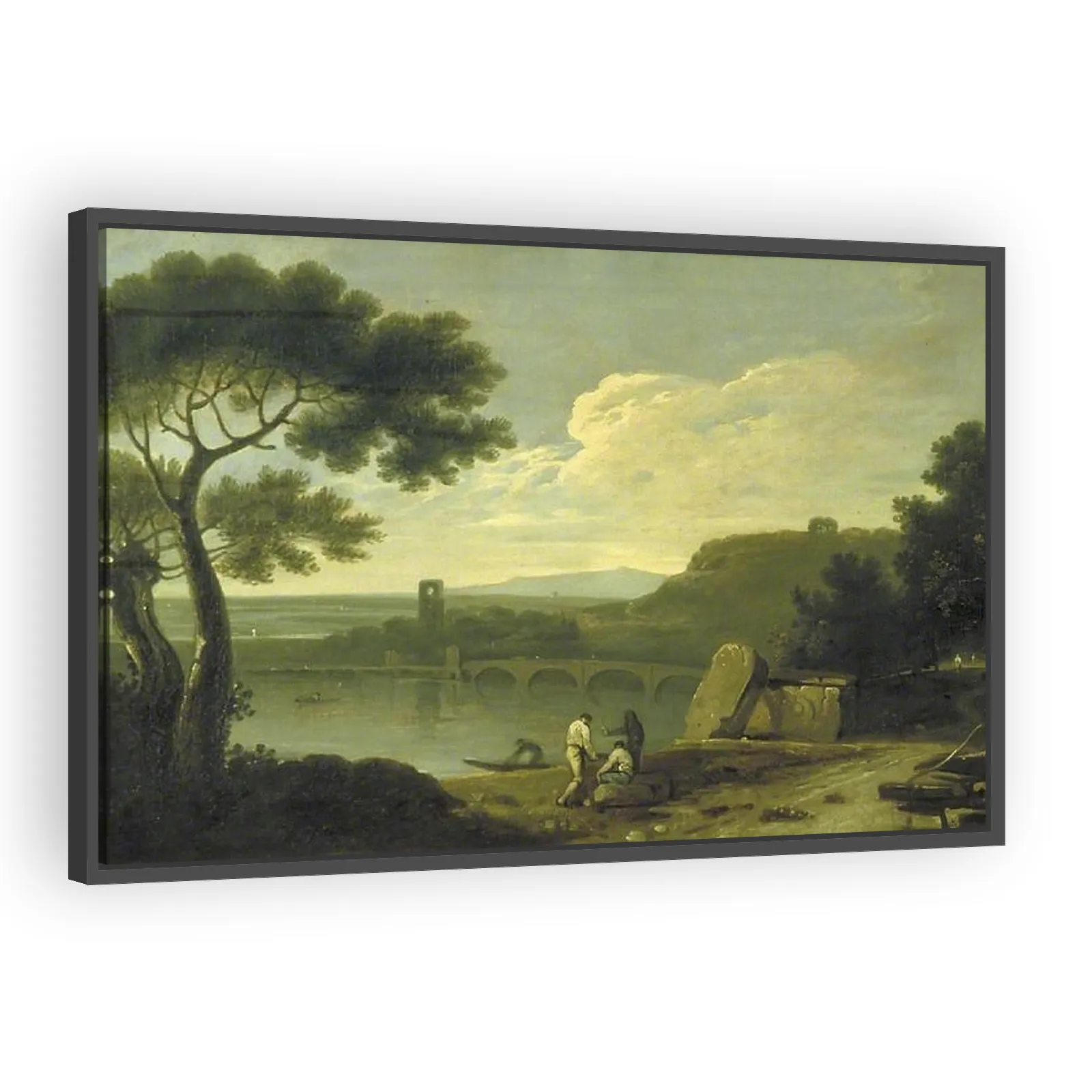 A serene River Landscape by Richard Wilson, showcasing his mastery of atmospheric light and classical composition. This work captures 18th-century landscape ideals — ideal for collectors seeking histo...