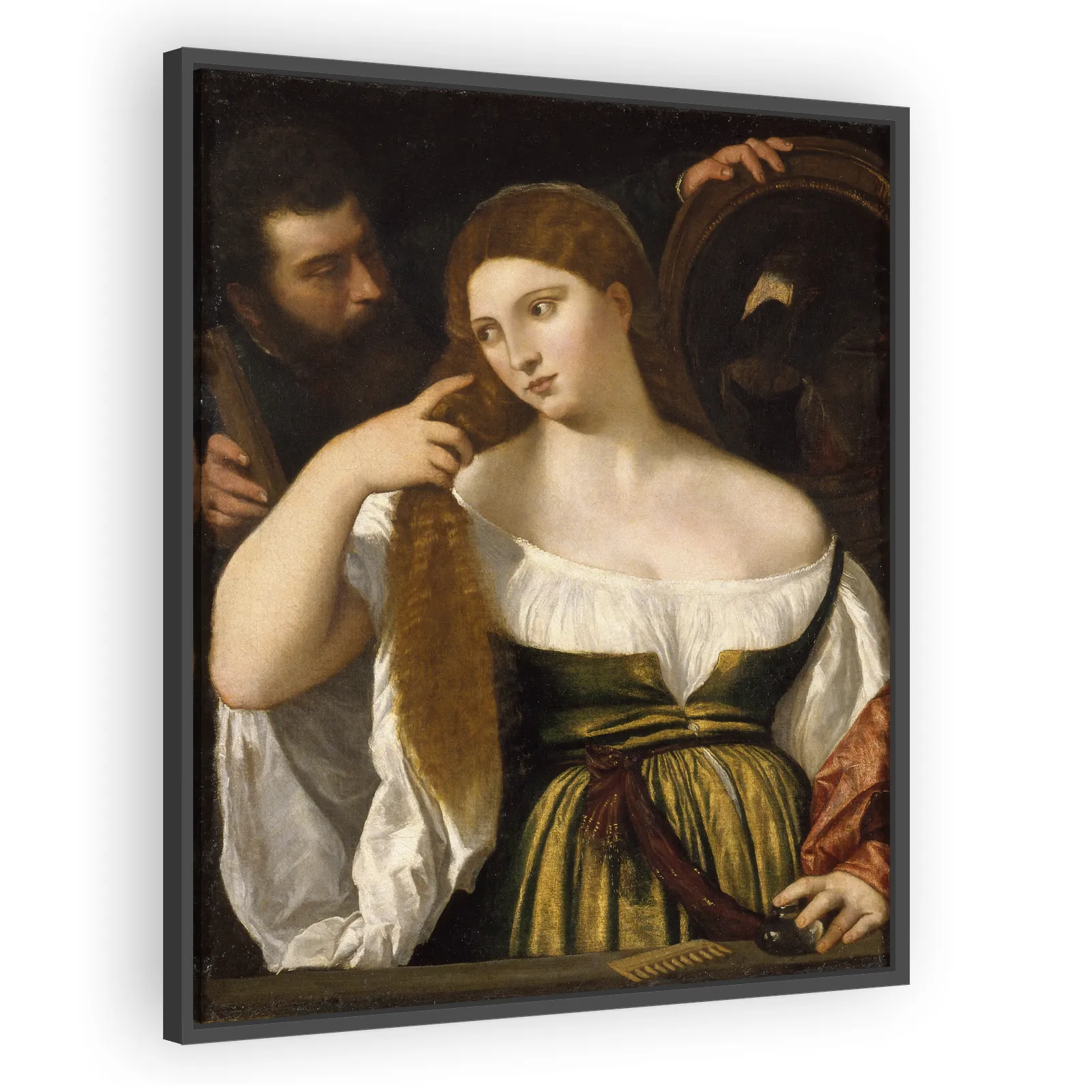 A luminous work by Titian (1515) that captures Venetian colorism and the intimate drama of a woman with a mirror. Elegant composition and psychological presence make it a compelling piece for collecto...