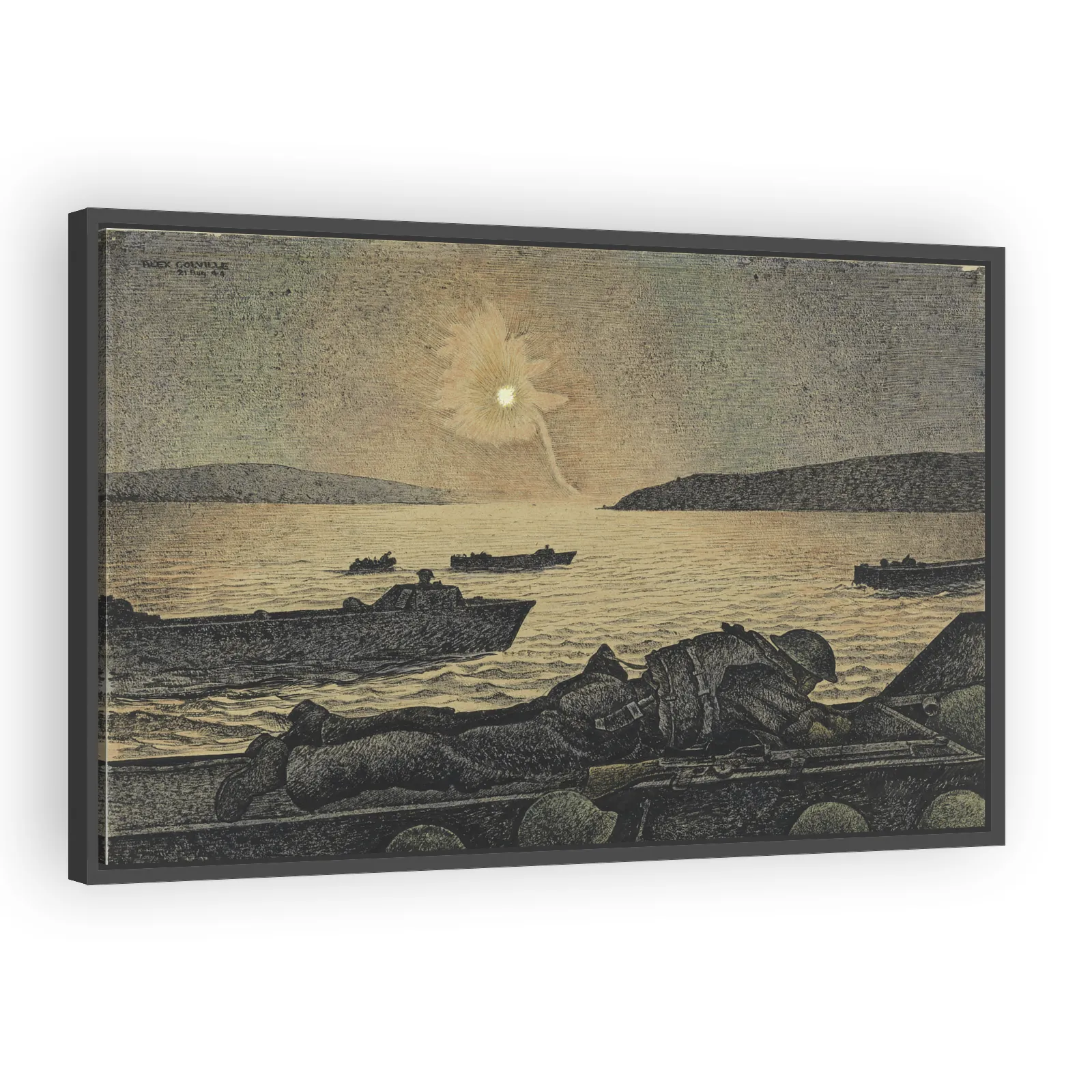 Alex Colville’s 1944 wartime scene captures a single flare ascending against a stark sky. Combining measured realism, economy of detail, and poignant stillness, the work conveys tension, observation,...