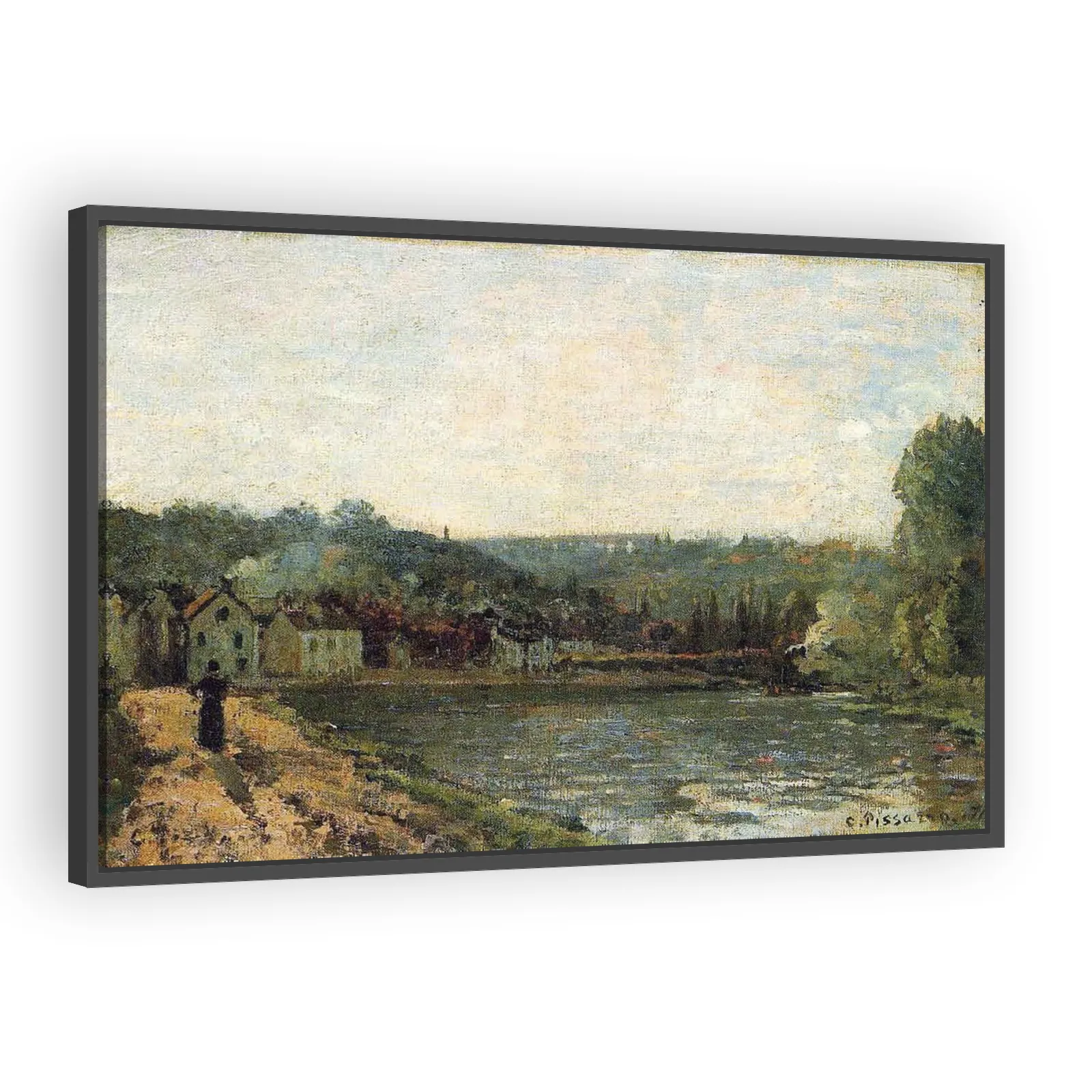 A quietly luminous Impressionist landscape by Camille Pissarro, capturing the Seine at Bougival with luminous atmosphere, loose brushwork, and a modern view of suburban leisure and nature. Ideal for c...
