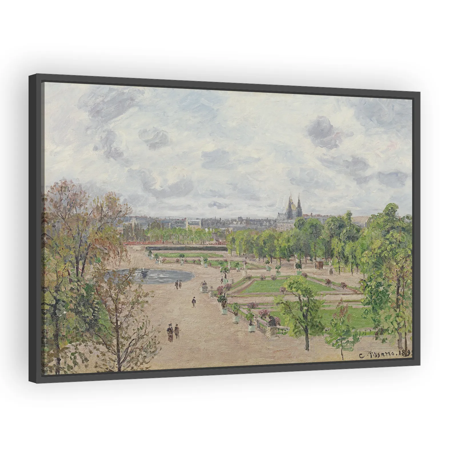 A luminous late-19th-century cityscape by Camille Pissarro, capturing the Tuileries Gardens on a grey spring morning. Exemplary of Pissarro’s Impressionist technique, the work blends atmospheric subtl...