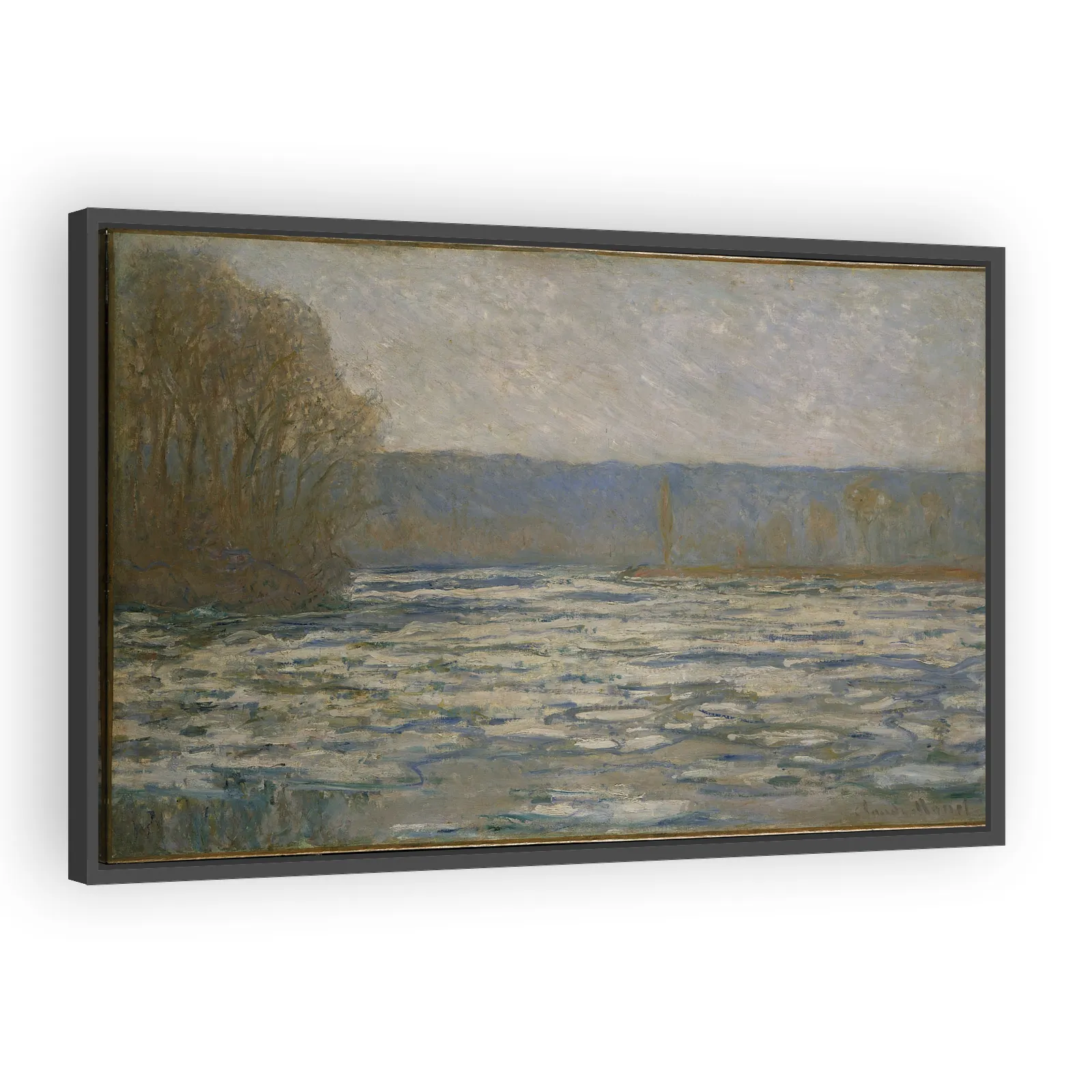 Claude Monet's 1893 scene captures the thawing Seine with luminous brushwork and fleeting atmosphere. A masterful study of light, movement, and seasonal transition—ideal for collectors drawn to Impres...