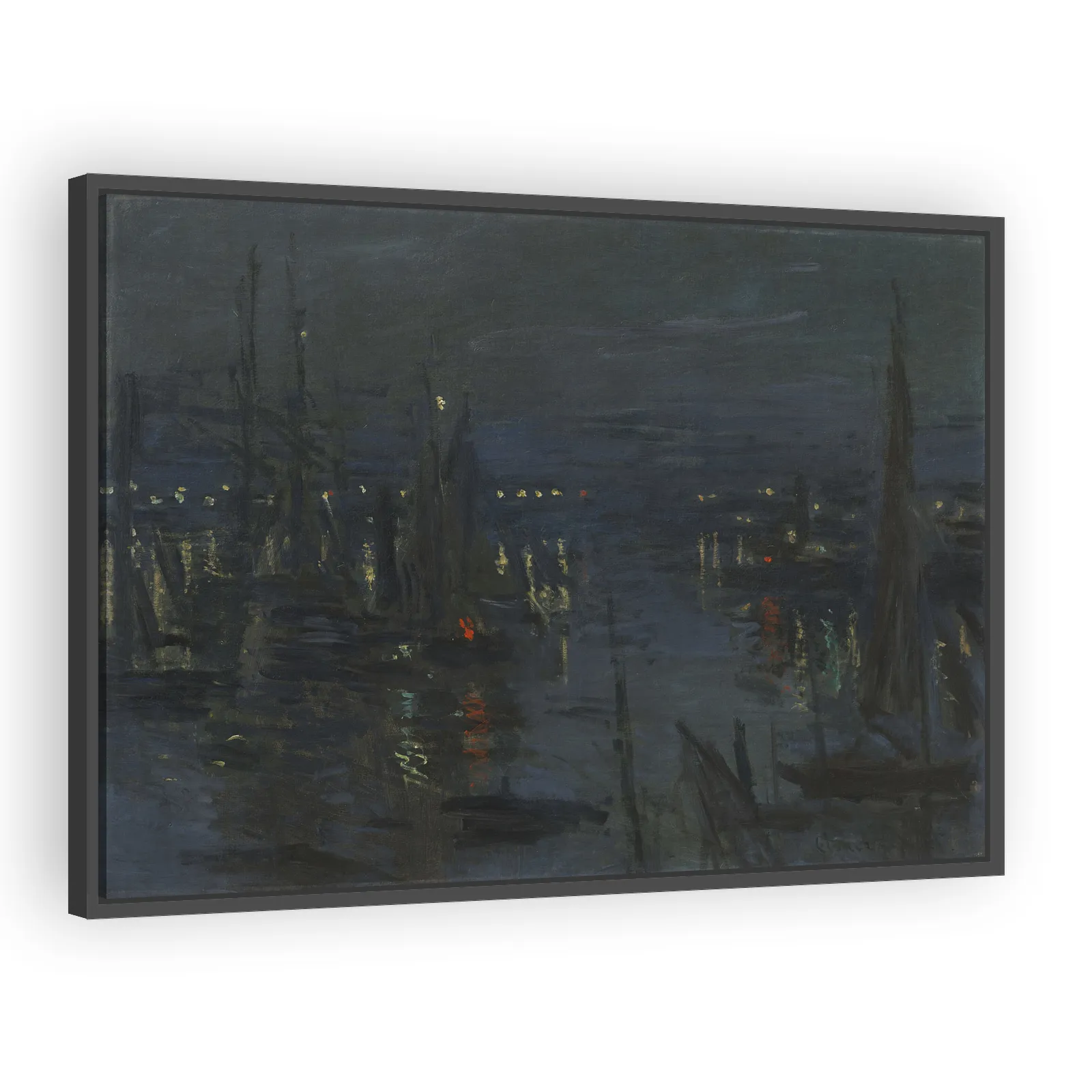 Claude Monet’s Port of Le Havre, Night Effect (1872) captures nocturnal harbor light with shimmering brushwork and daring color contrasts. A seminal Impressionist marine view, it offers atmospheric mo...