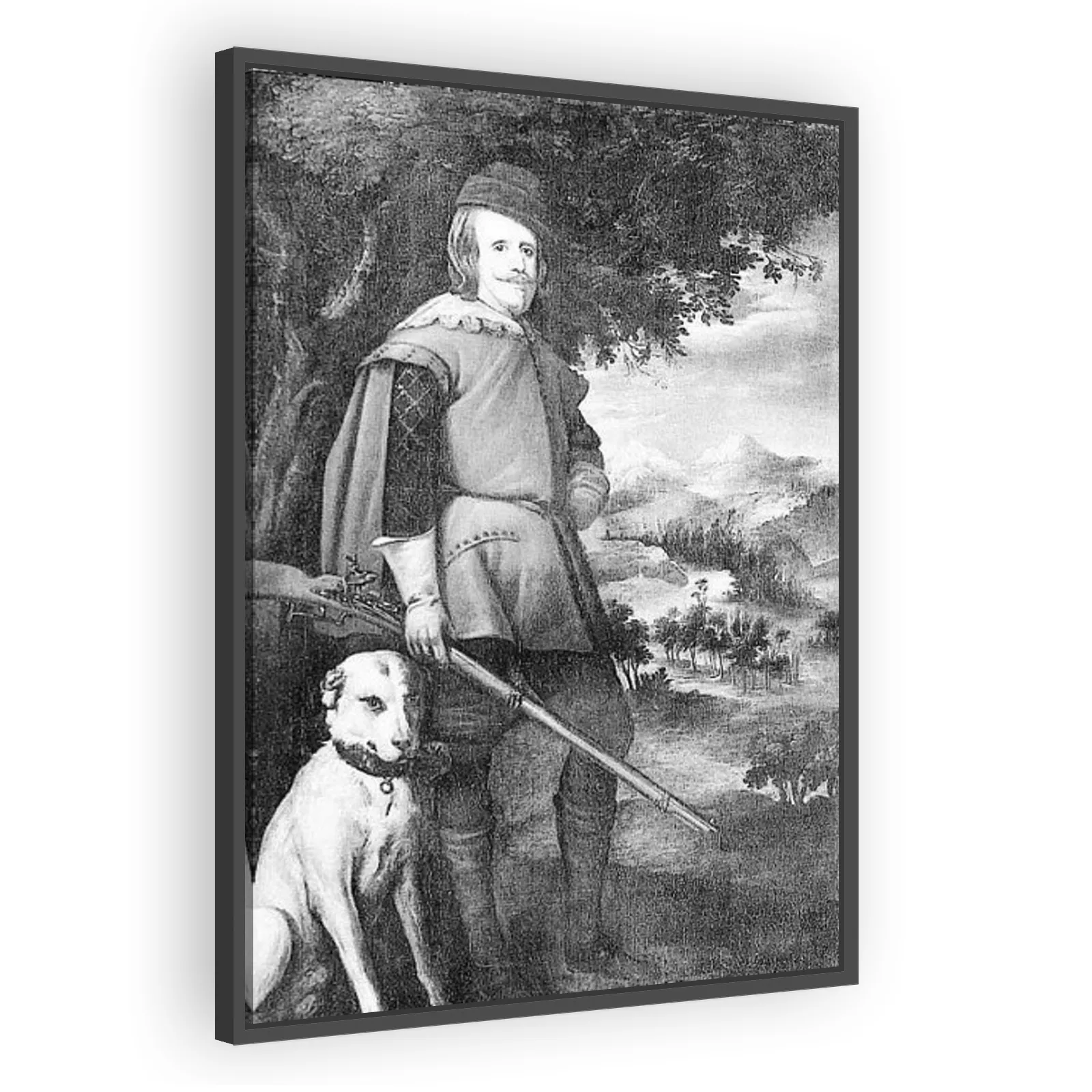 A commanding portrait by Diego Velázquez of King Philip IV in hunting dress, merging courtly grandeur with naturalistic observation. Celebrated for its elegant brushwork, psychological presence, and s...