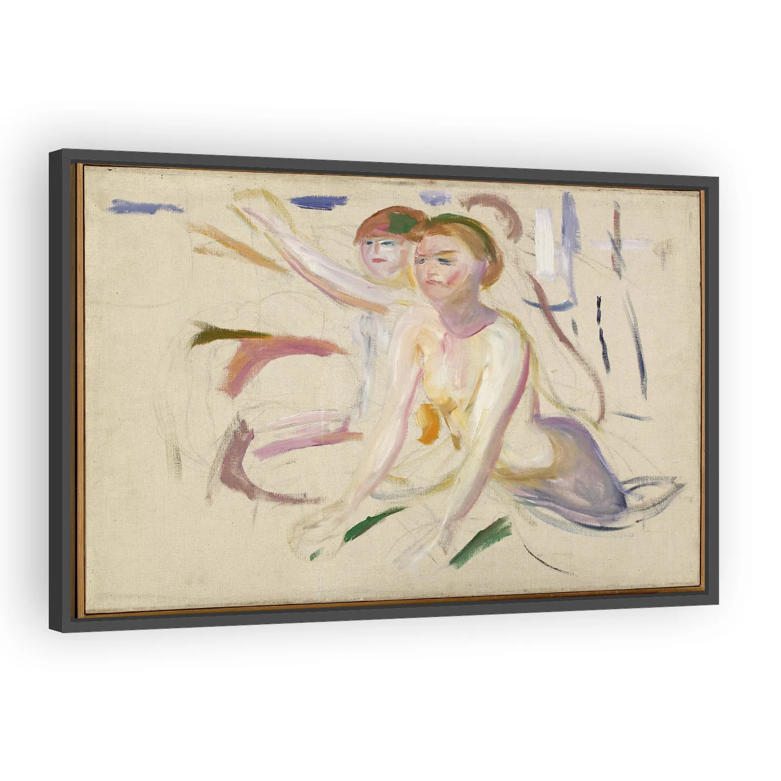 Edvard Munch’s Bathing Women (1917) captures a charged moment of nature and human presence. With expressive brushwork and bold composition, the work explores vulnerability, communal ritual, and the sh...