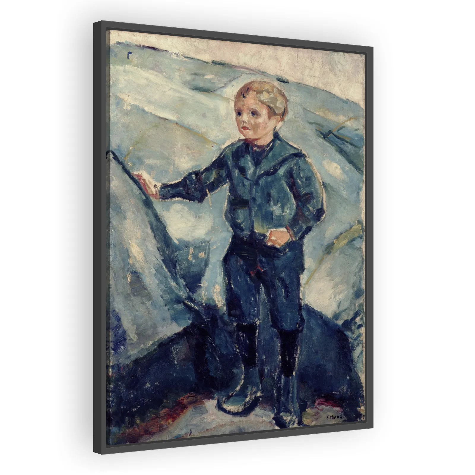 Edvard Munch's Boy in Blue (1900) captures the artist's introspective intensity through cool tonalities and a spare composition. A striking example of Munch's psychological realism, it appeals to coll...
