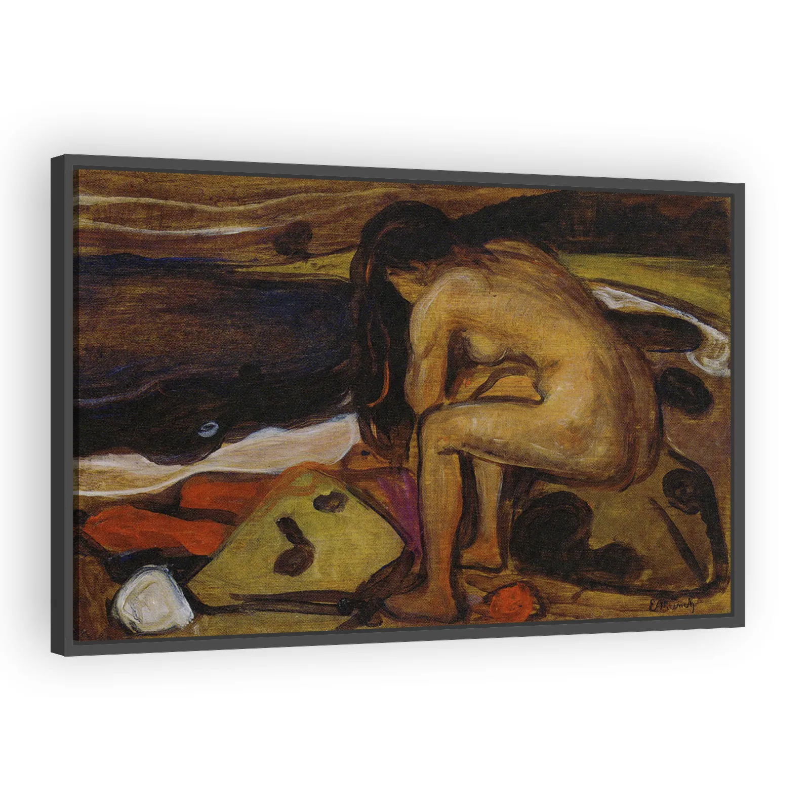 Edvard Munch's Sitting Nude by the Beach (1898) captures intimate introspection against a coastal landscape. Combining expressive brushwork and psychological intensity, the work appeals to collectors...