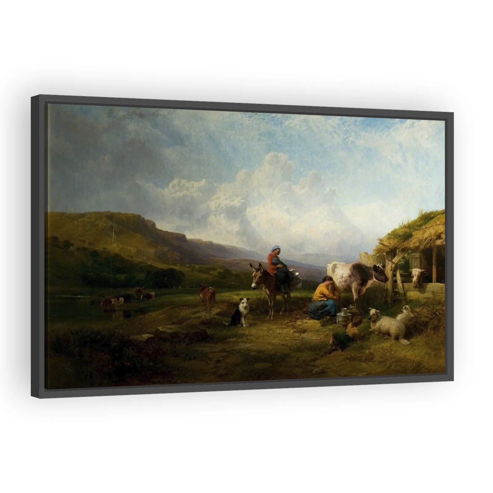 A tranquil 1865 landscape by George Cole capturing rural Yorkshire life along the River Swale. Rich in atmospheric light and meticulous detail, the scene combines pastoral charm with Victorian landsca...