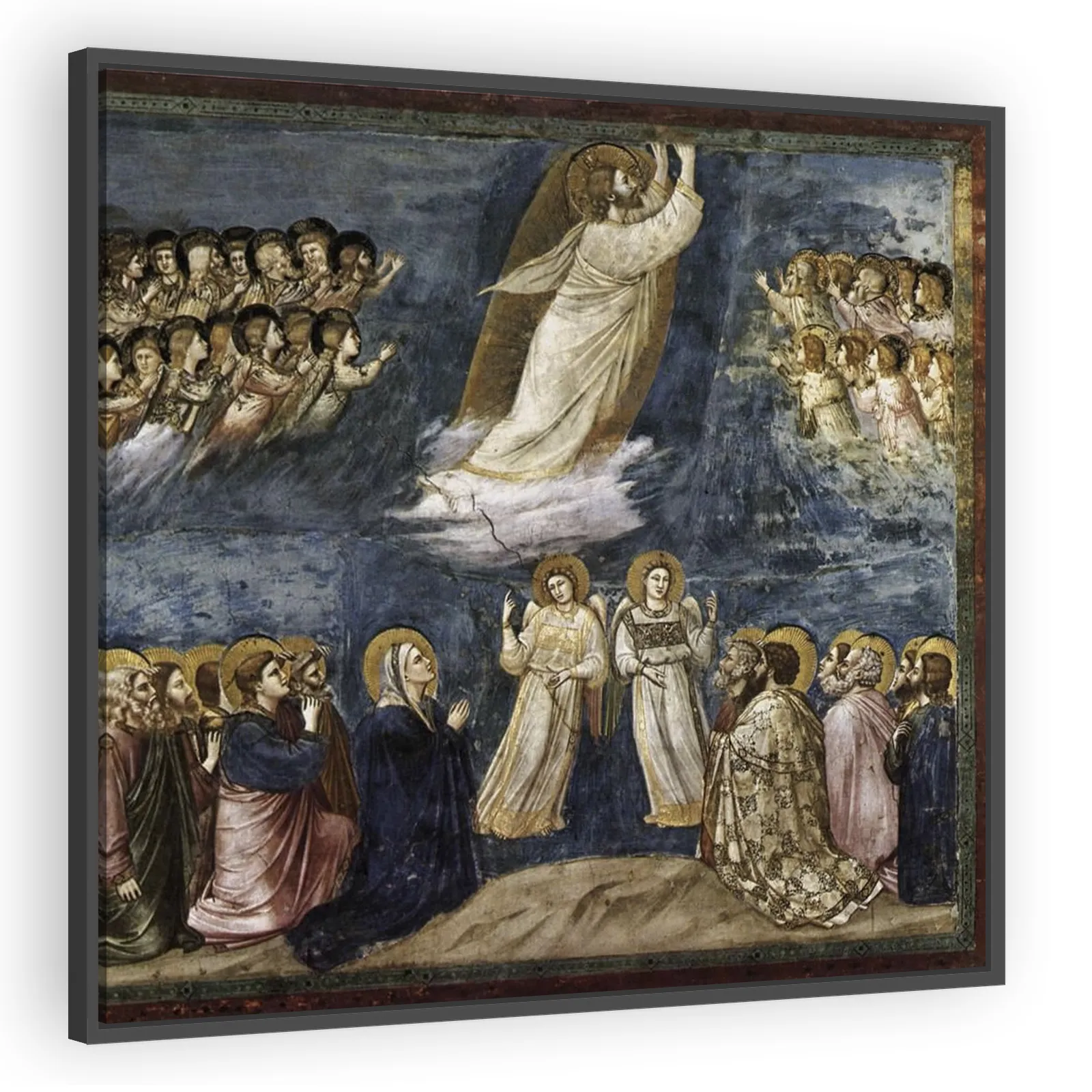 Giotto’s Ascension (1303) is a seminal Proto‑Renaissance fresco from the Scrovegni Chapel. The work marks a shift toward naturalism, emotional clarity, and spatial coherence in religious painting, off...