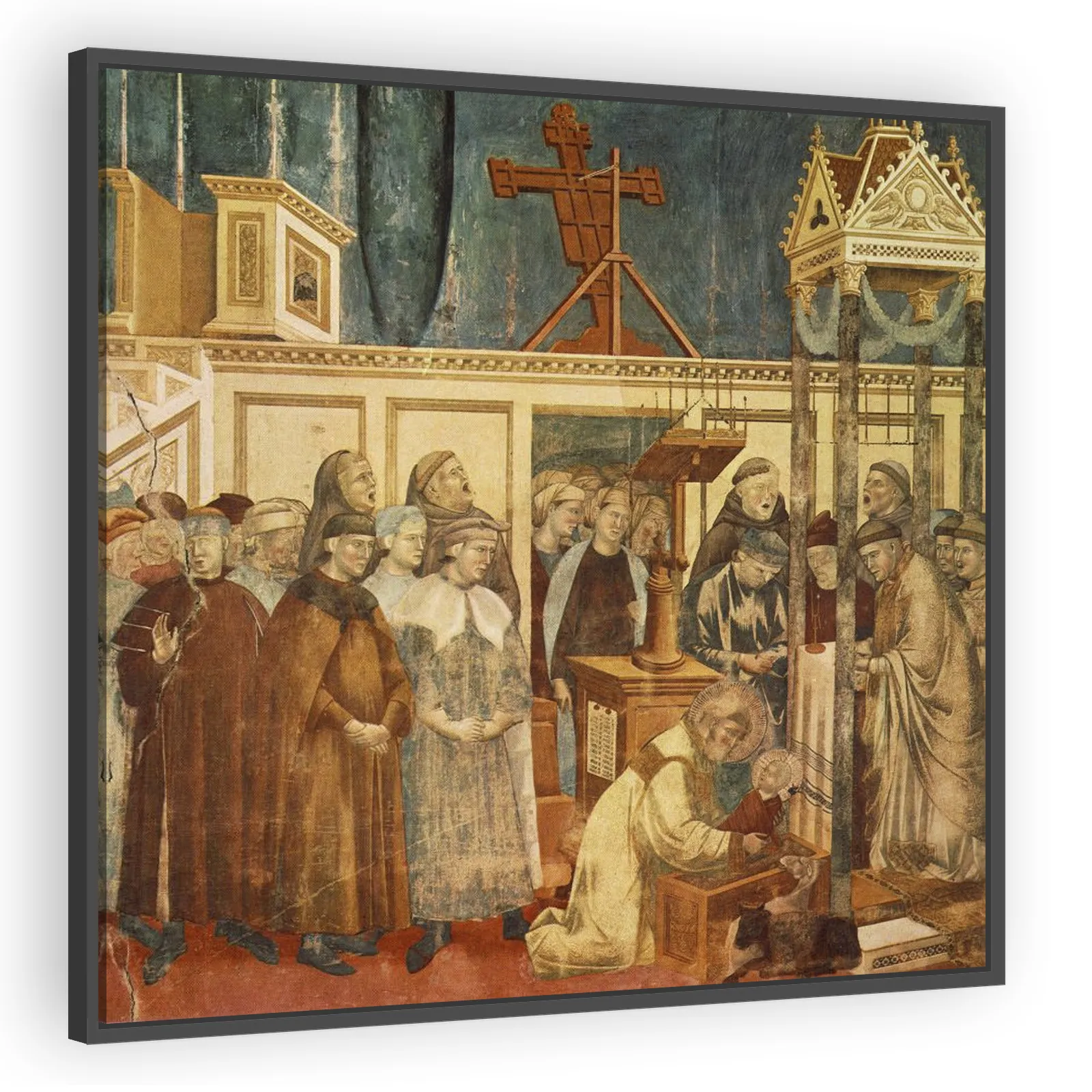 Giotto’s 1295 fresco in the Upper Basilica of San Francesco d’Assisi depicts the Legend of St. Francis with early naturalism and emotive storytelling, a cornerstone of Proto-Renaissance religious art.