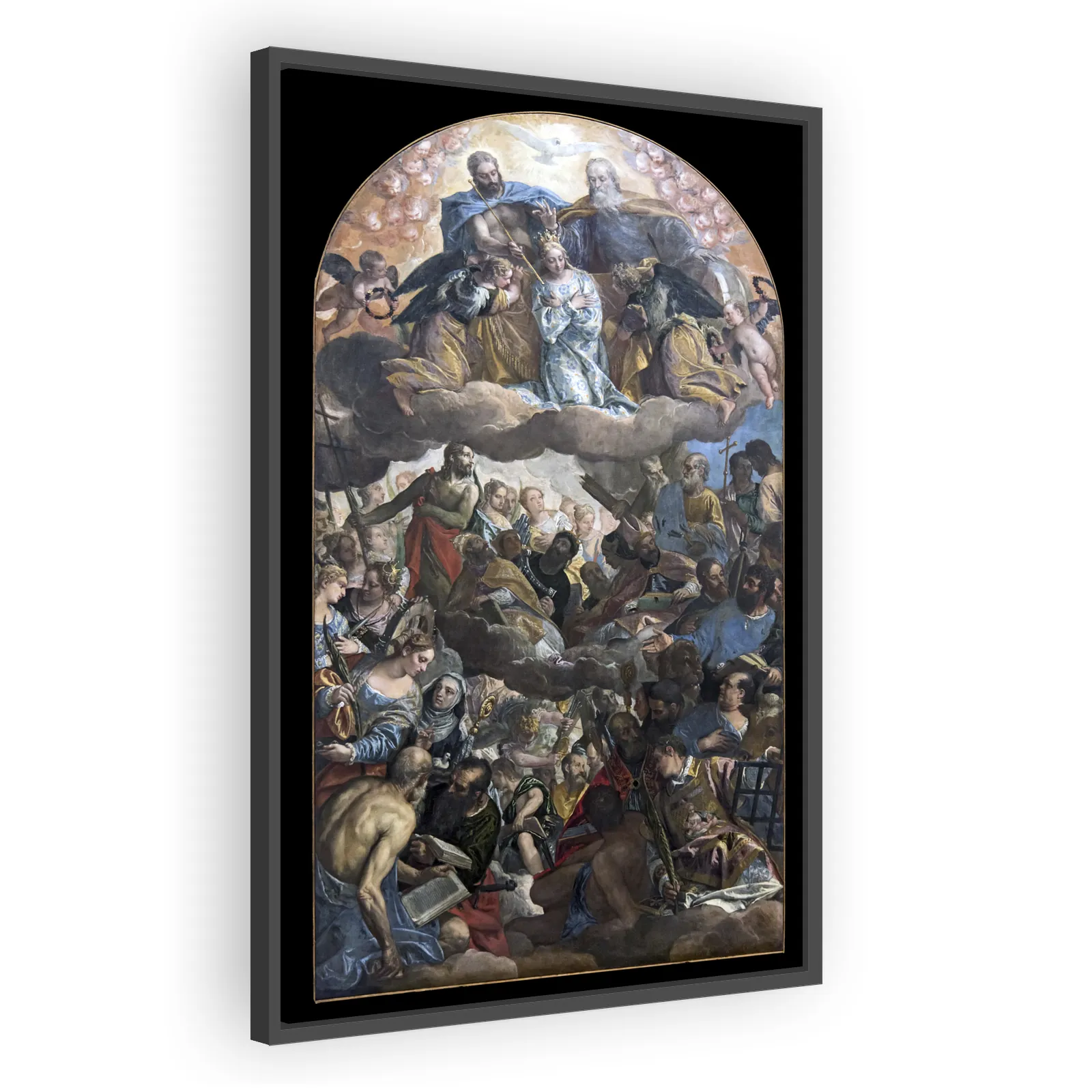 A grand, luminous High Renaissance altarpiece by Paolo Veronese, Coronation of Mary displays rich color, monumental composition, and theatrical use of light—an ideal acquisition for collectors drawn t...