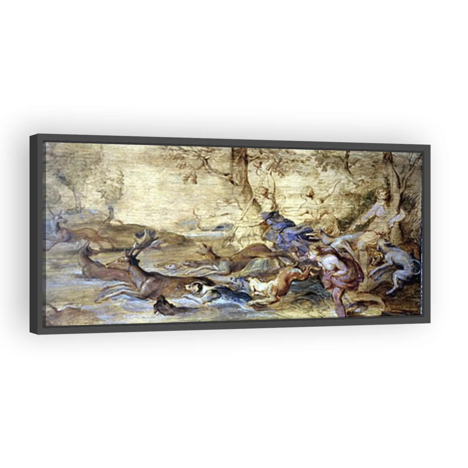 A dynamic Baroque depiction of the goddess Diana by Peter Paul Rubens (1639). Vibrant color, energetic composition, and dramatic movement make this mythological scene a compelling focal point for coll...