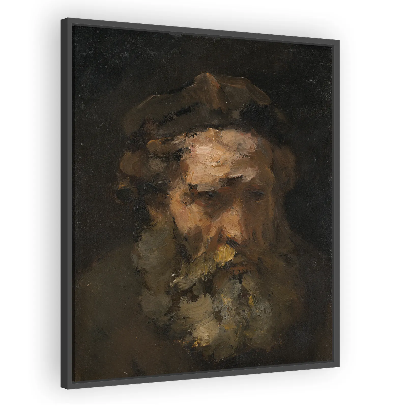 A striking late work by Rembrandt (1662) that captures an intimate, contemplative moment. Rich chiaroscuro and textured brushwork reveal the artist’s mastery of light and human expression, ideal for c...