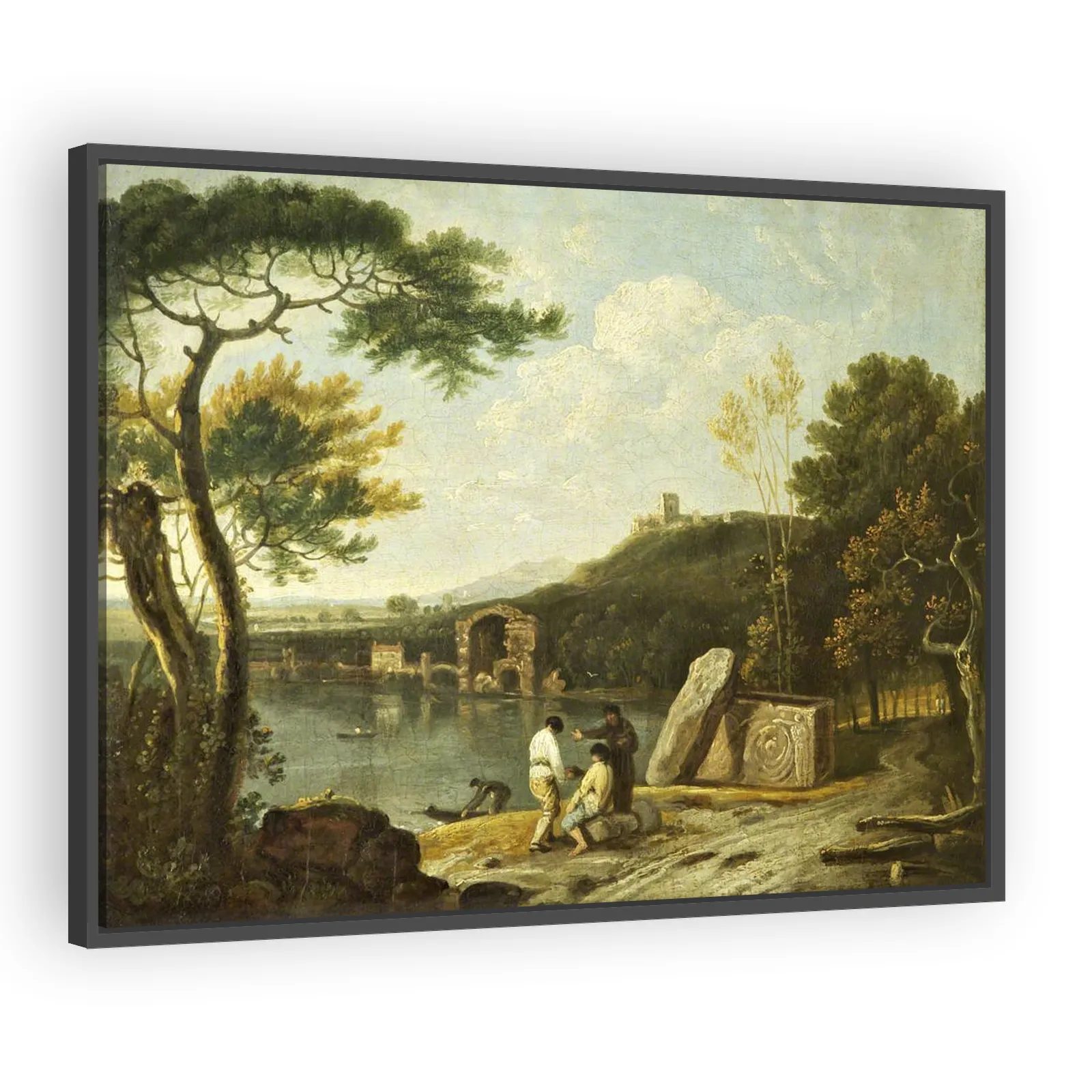 A commanding classical landscape by Richard Wilson that evokes Italianate atmosphere and mythic resonance. Subtle tonal harmonies and carefully placed figures invite contemplative viewing — ideal for...